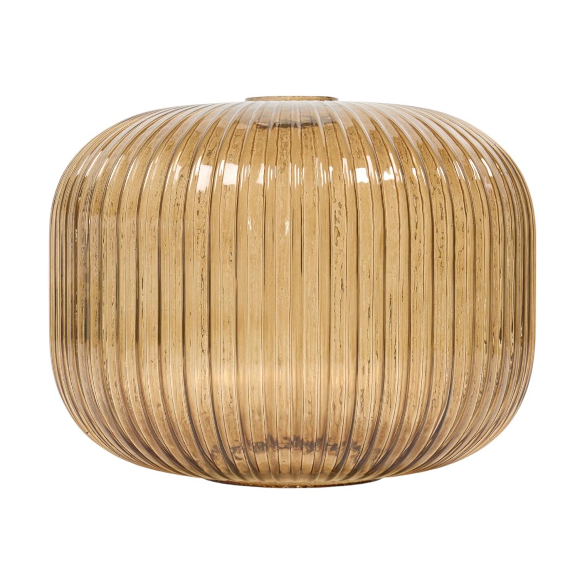 Upgrade your indoor lighting fixtures with the Maven Glass Shade. This shade features a ribbed drum shape, making it perfect for your living room, hallways, dining areas or bedrooms. The translucent amber-hued glass softly diffuses light to emit warm, aesthetic illumination throughout your room, making it a sophisticated addition to any decor.