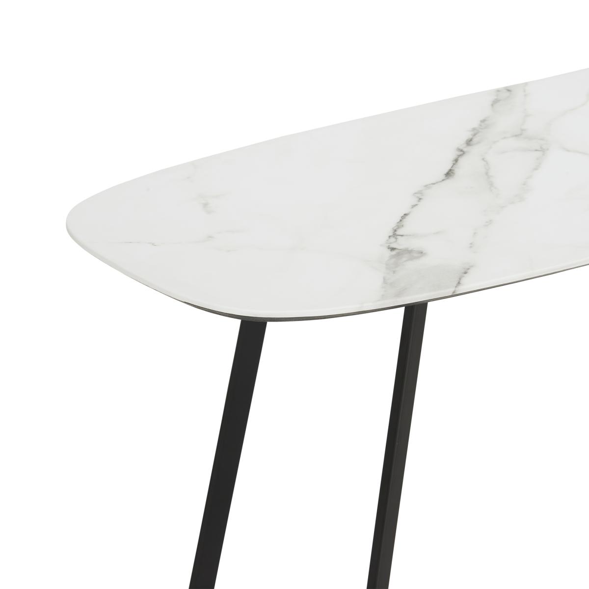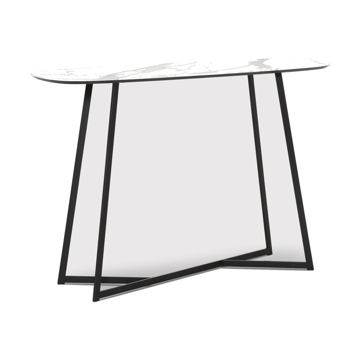 Looking to freshen up your living or dining space? The Maverick Console Table will undoubtedly enhance the room. Create a gorgeous feature to place along the wall, giving you extra room to display family photos, a lampshade, candles and more. The slim black legs featuring an unusual crossover design, hold up the stunning white marble table top of the Maverick Console Table, a gorgeous monochrome addition.