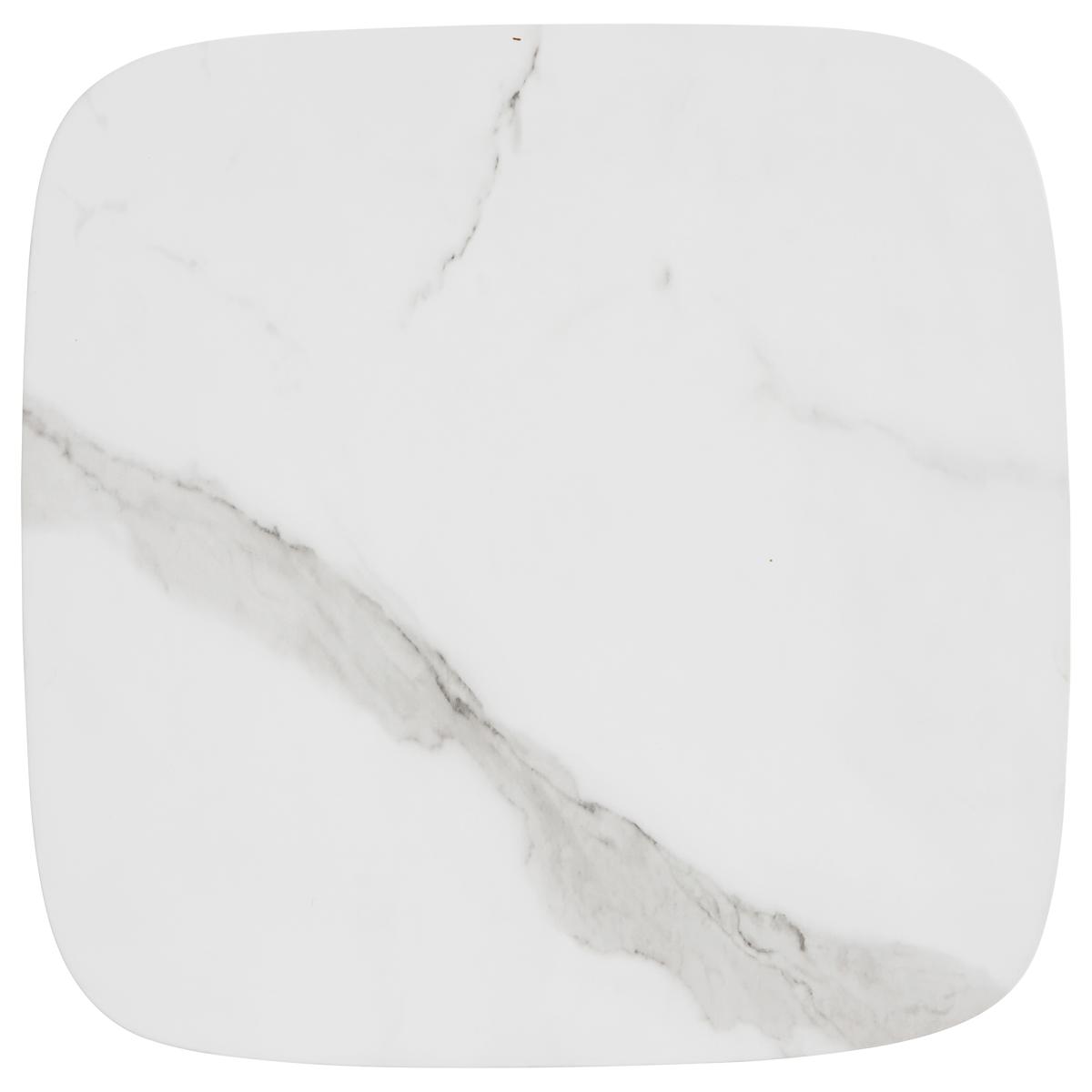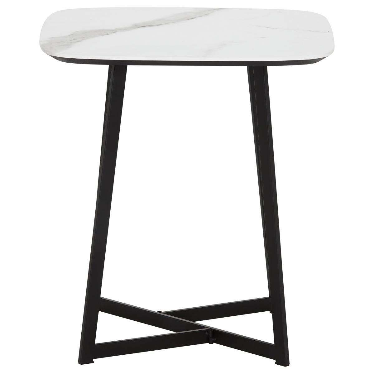 The Maverick Side Table combines a practical faux white marble top with a black metal base featuring a unique stepped cross design. Both features combine offering a modern twist to a mid-century style. Perfect for any room especially a living space to place a lamp and drink on whilst you are relaxing.