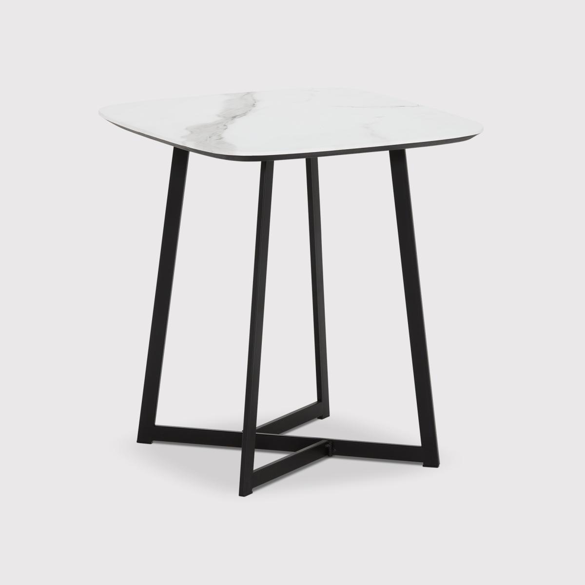 I love this little side table because of its clean, modern design and versatile colour. The white top with subtle marble veining adds a touch of sophistication, while the understated black legs keep it grounded and flexible for various interiors. It works particularly well in contemporary or minimalist spaces but can also act as a contrasting piece in more eclectic or traditional schemes. For styling, consider previewing with a simple lamp, a small stack of books, or a decorative tray to add personality. Its compact size makes it ideal next to a sofa or armchair, and it’s equally useful in bedrooms or hallway corners for functional charm.