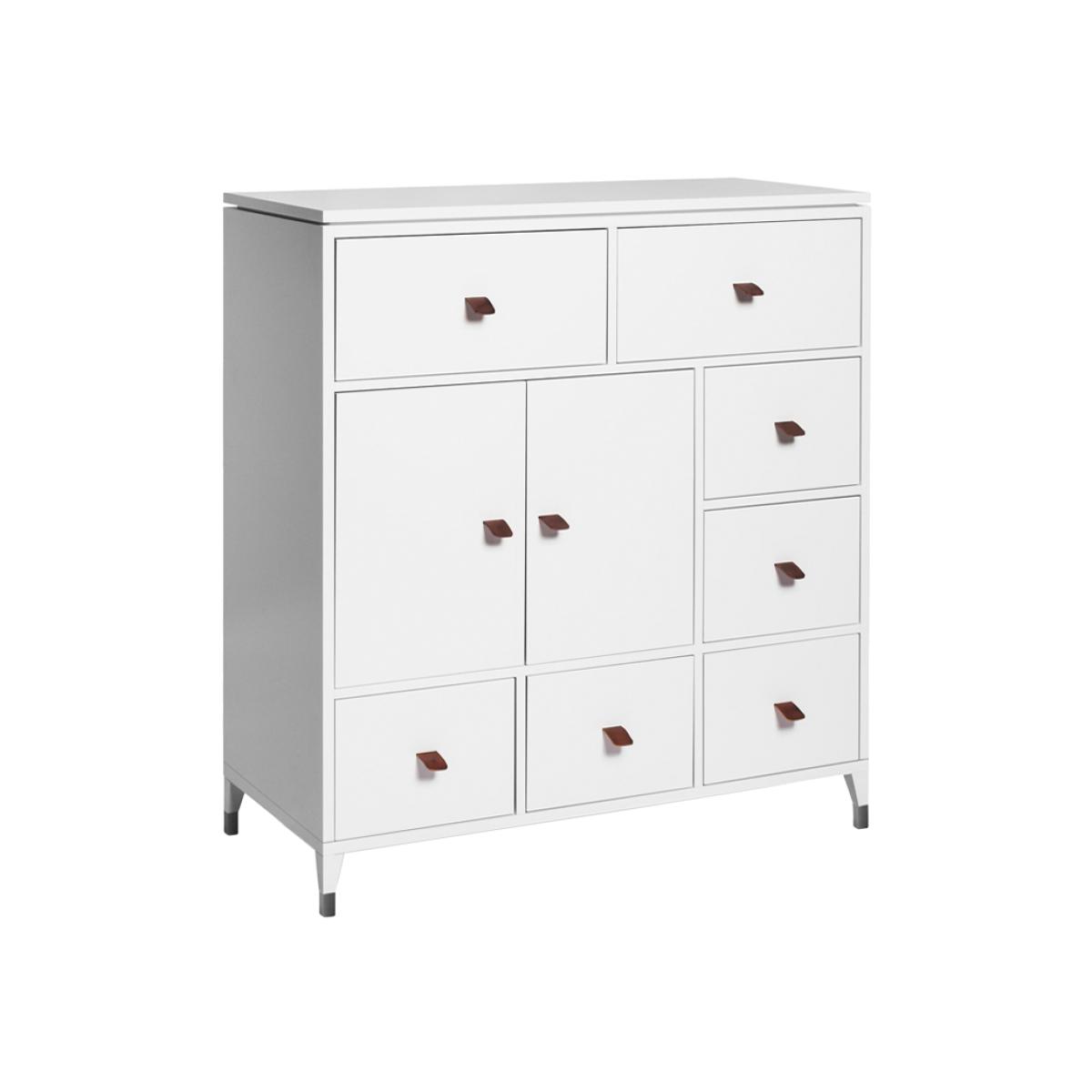 Abisko sideboard from Mavis combines Nordic simplicity with practical storage. Doors and drawers feature a soft-close function and handles in tanned elk leather that provide both comfort and a subtle touch of exclusivity. Inspired by the nature and craft traditions of northern Sweden, the sideboard offers ample storage for the hallway or bedroom, while the beautiful details elevate the interior.