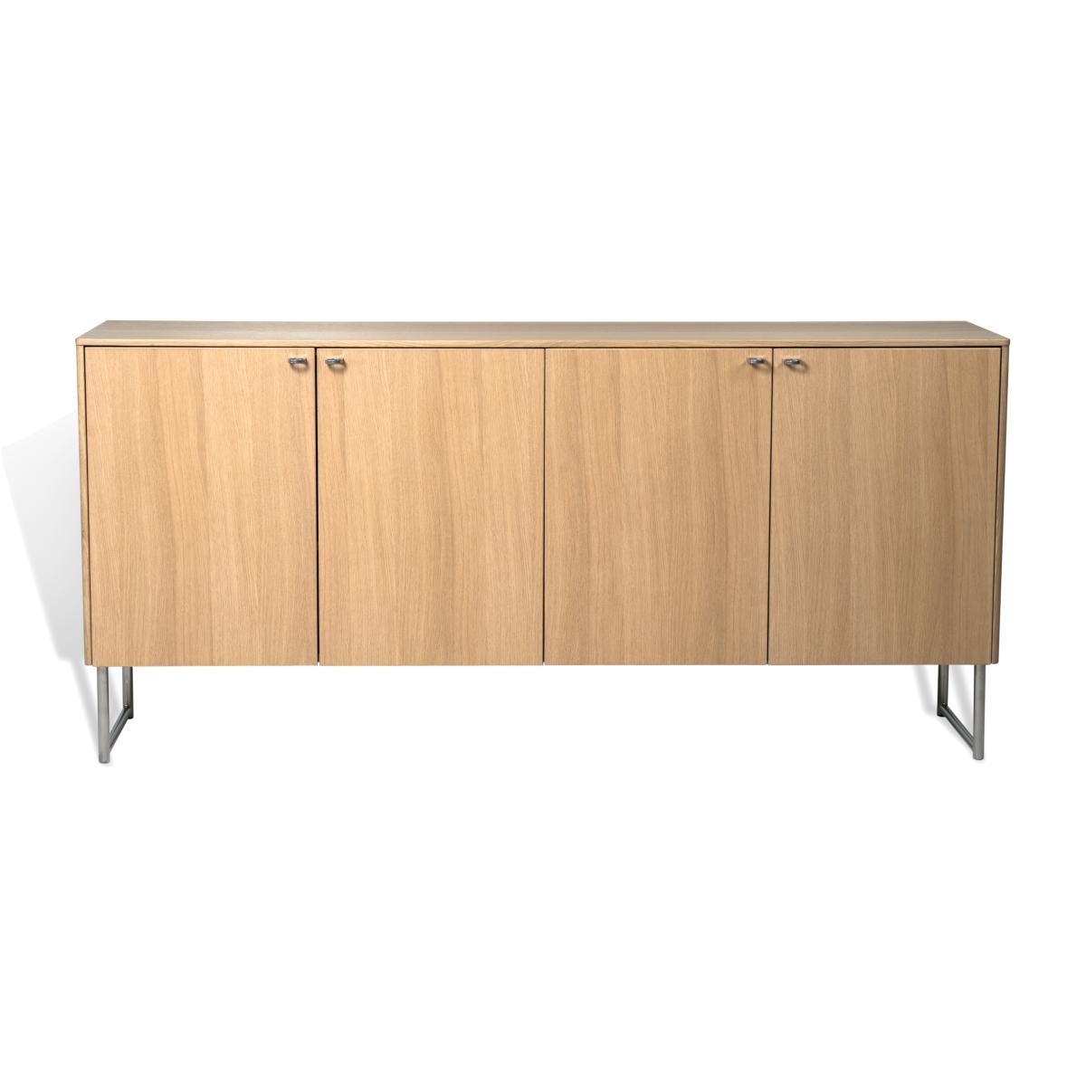 The Mavis sideboard is a versatile piece that works beautifully in both contemporary and classic interiors, thanks to its understated yet sophisticated appearance. Its white-pigmented matte lacquered oak finish adds a soft, neutral tone that easily complements other natural materials and colour palettes. I love how its clean lines and slender legs lift the piece off the ground, giving it a light, airy feel-perfect for smaller spaces or rooms where you want a sleek storage solution. Practical styling ideas include placing it in living rooms for extra storage, topped with a sculptural lamp or decorative trays, or in dining areas as a buffet. Its subtle elegance makes it a great canvas for accessories or statement centrepieces, allowing it to adapt effortlessly to a range of styles from Scandi minimalism to more eclectic looks.