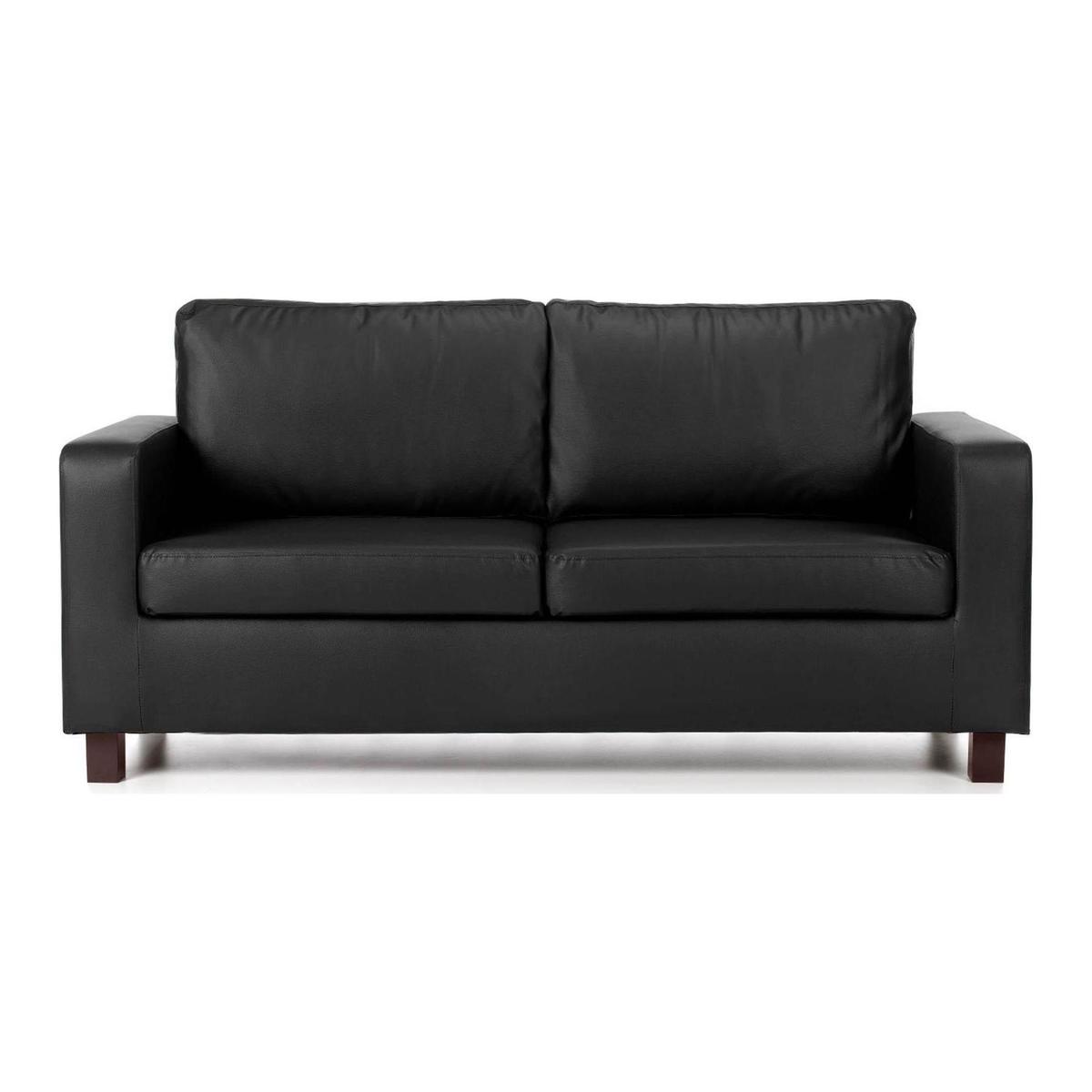 A 3-seater contemporary sofa upholstered PU leather and available in a choice of five colours.\n\nThe Max 3 Seater Faux Leather Sofa boasts a clean, contemporary design. The loose back cushions are filled with fibre for excellent support, whilst the seat cushions are foam-filled to provide a truly relaxing sitting experience.\n\nThe sofa is covered in durable PU leather and comes in a choice of black, brown, cream, white or red, allowing you to match it to your home colour scheme.\nPlease note, unfortunately we cannot deliver this item to the Channel Islands.\n\n[Click here](https://www.dunelm.com/infodocs/downloads/Furniture-Sizing-Guide.pdf) to check out our handy sizing guide to help you find out if you’ll be able to get your new furniture into your home.