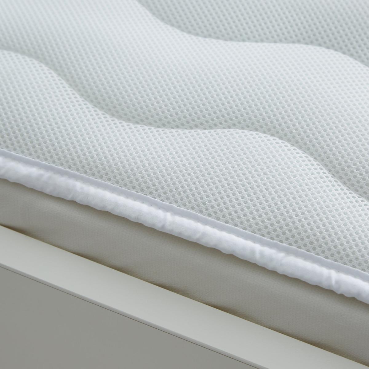 Give your little one's cot that added touch of compost with this Luxury Air flow mattress enhancer. This mattress topper encourages airflow and has elasticated corners to ensure a comfortable and secure fit. This topper is super soft and is machine washable. Ensure the child’s face is uncovered. Do not use this product in combination with a sleep bag or blanket. Take into account the room temperature and child’s sleepwear. Overheating can endanger the life of your child! Not recommended for children under 12 months old. Stop using this coverlet at first signs of damage. Keep away from fire. Machine washable. Do not dry clean. Pillows are not recommended for children under 12 months old. In any event, no plastics or rubber cover should be used. Carelessness causes fire All fillings have been tested to ensure compliance with the relevant ignitability test. Filling conforms to Furniture and Furnishing (Fire)(Safety) Regulations 1988. This Collection is verified by OEKO-TEX® and independently tested for harmful substances. It stands for customer confidence and high product safety.