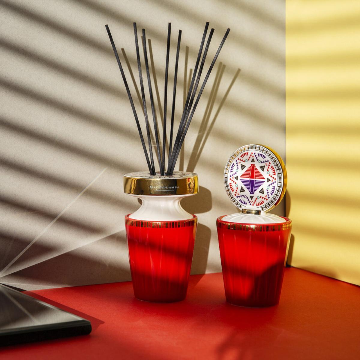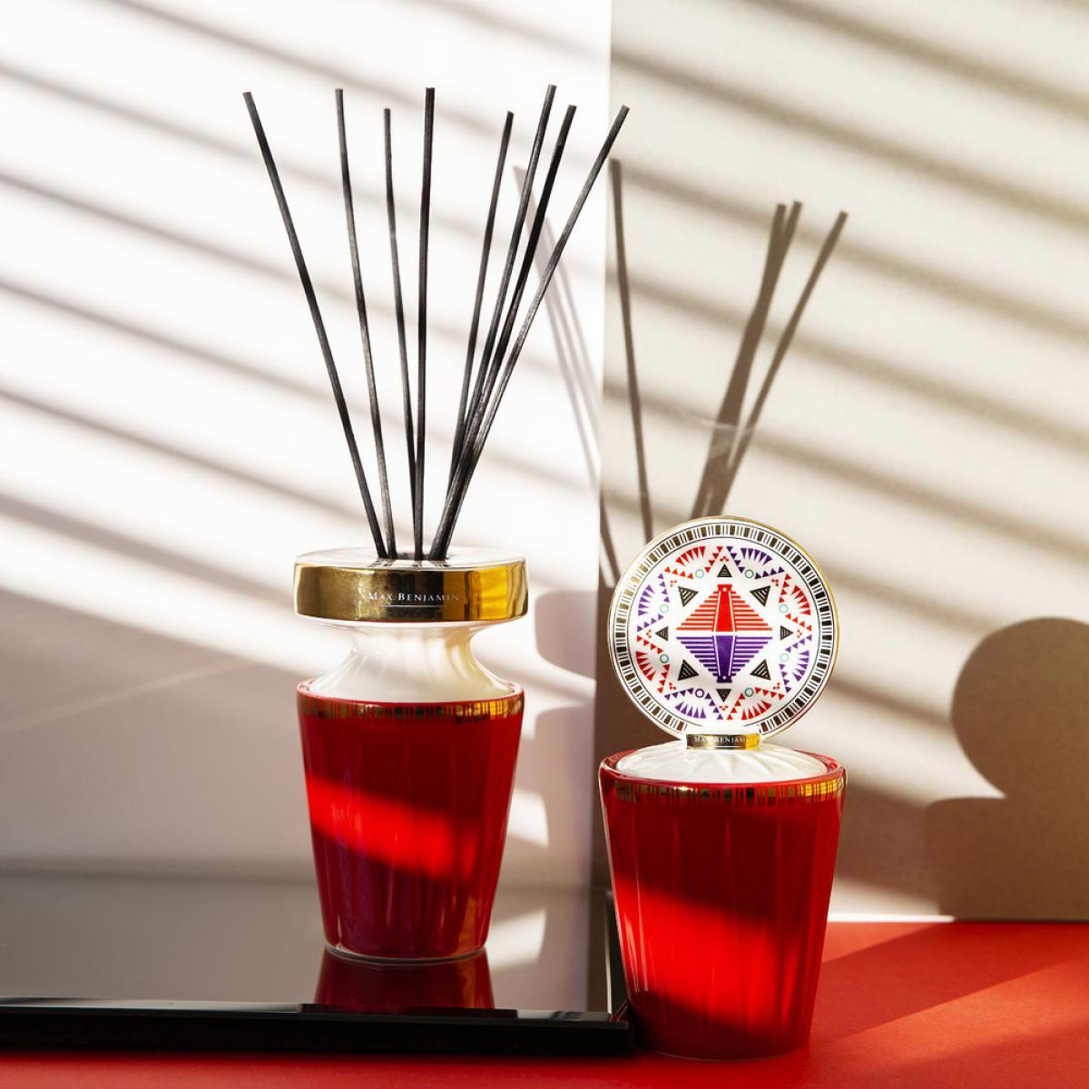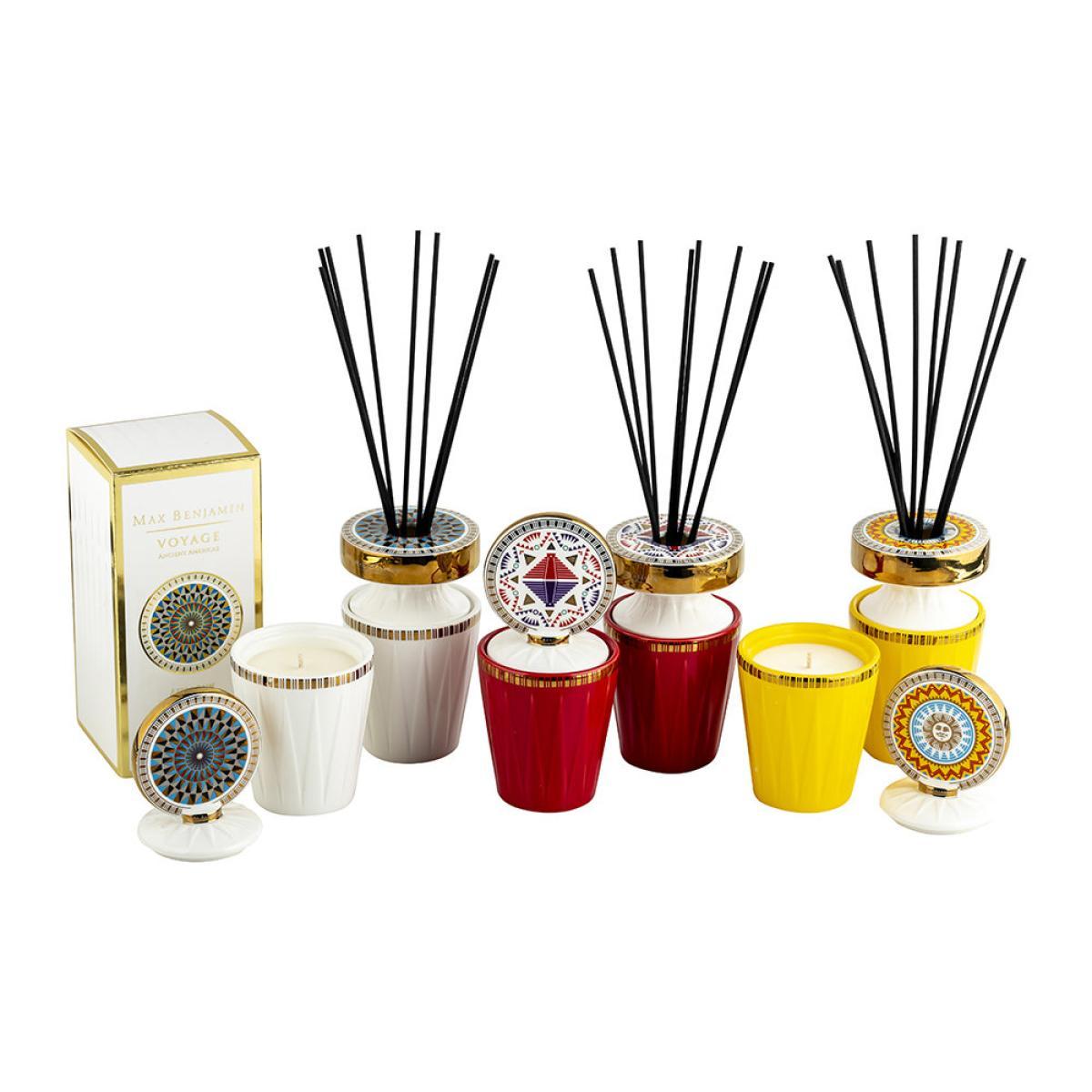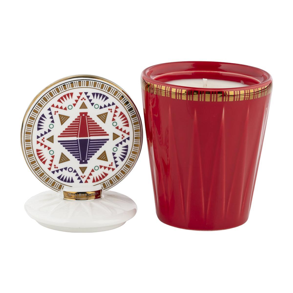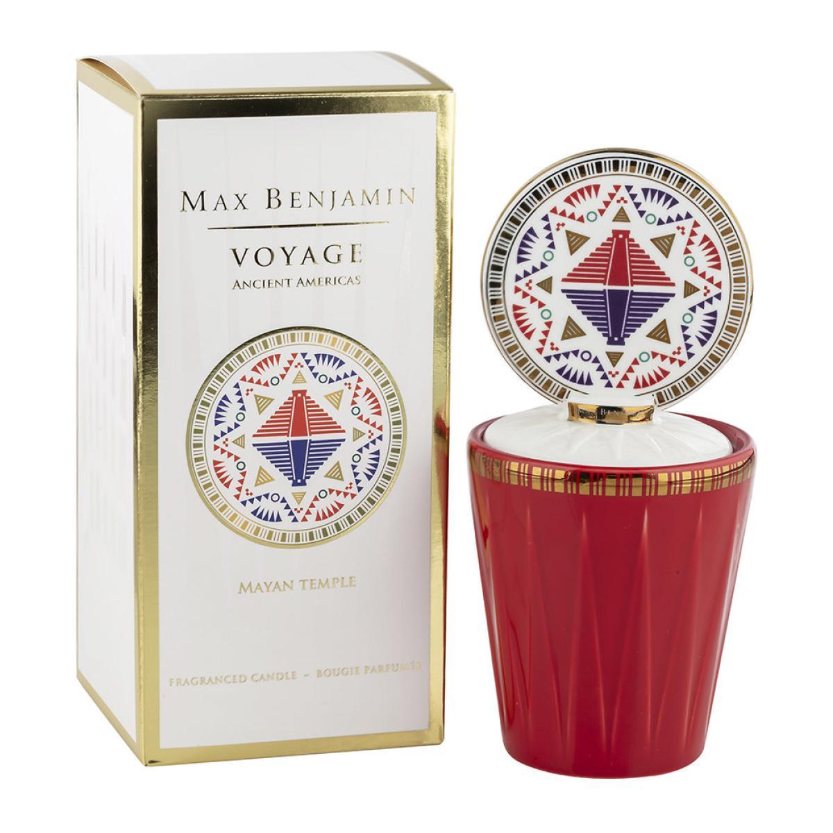 Embark on an ancient voyage with this scented candle from Max Benjamin. Inspired by the soaring pyramid temples and ornate palaces of the Mayan empire, this candle is encased in a patterned porcelain vessel topped with a lid decorated with a design reminiscent of the civilisation's ancient designs. A spicy, woody scent, it has a base of warm cedar wood, musk and moss on a heart of clove, nutmeg and magnolia. Finished with top notes of herbal accords, eucalyptus and incense, it will take your home on fragrance adventure. Key features: * Scented candle * Fragrance notes: musk, cedar wood, moss, clove, nutmeg, eucalyptus, incense * Dimensions: H18.5xØ8.5cm * Size: 200g * Burn time: approx. 50 hours * Inspired by the soaring temples & ornate palaces of the Mayan empire * A spicy, woody fragrance * In a patterned red porcelain vessel * With a hand painted gold patterned lid * 100% natural wax & Italian cotton wick * Handmade in County Wicklow, Ireland