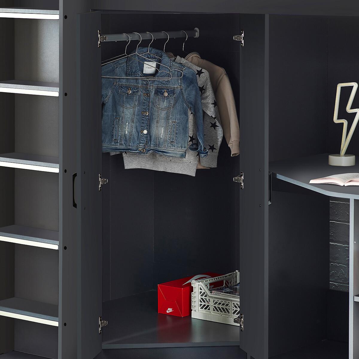 Designed with perfect functionality, the Max Highsleeper is the ultimate bed for smaller bedrooms. The angled wardrobe provides ample space for clothing, whilst the built-in shelving is great for books and folders. A built in desk provides the perfect study space. Product details• Built in angled wardrobe• Built in shelving• Glow in the dark steps for added safety• Assembly required• Fixings included• Compatible with Standard UK single 90 x 190 cm mattresses• Mattress not included• Maximum mattress height - 17cm. To minimise the danger of falling from the top bunk, we recommend that the top of the mattress should always be at least 16cm below the top of the lowest part of the guardrail. • 12 month product guarantee. Composition - 100% Chipboard Overall Dimensions 196.5 cm x 96 cm x 173 cm , Weight - 136.5 KGGuard rail height - 132.5. Shelf dimensions - 32 x 28.5 x 37.5 Desk Dimensions – 73.5cm x 101.5cm. Package Dimensions:Parcel 1 Packaged Dimensions - 201 cm x 50 cm x 10 cm, Weight 29 KGParcel 2 Packaged Dimensions - 178 cm x 65.5 cm x 10 cm, Weight 42 KGParcel 3 Packaged Dimensions - 107 cm x 101.5 cm x 11 cm, Weight 39 KGParcel 4 Packaged Dimensions - 156 cm x 59 cm x 12 cmcm, Weight 38 KGPlease note: this product cannot be be delivered to all Offshore Islands Northern Ireland or Republic of Ireland. This product will be dispatched by one of our trusted suppliers. You’ll be contacted by their selected courier about your delivery.