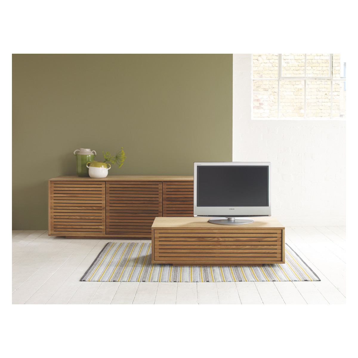 Crafted from solid oiled oak and oak veneer, the Max small TV stand adds warmth and character to a room. Its slatted front allows use of a remote control without opening its door, for an attractive and practical solution. Crafted from beautiful and durable materials, the Max small TV stand will suit any interior scheme and comes complete with cable management to hide away untidy wires. Finished in a rich oil to add warmth to the oak, the Max TV stand is avilable in various sizes, and is part of the wider Max living, storage and bedroom furniture range.