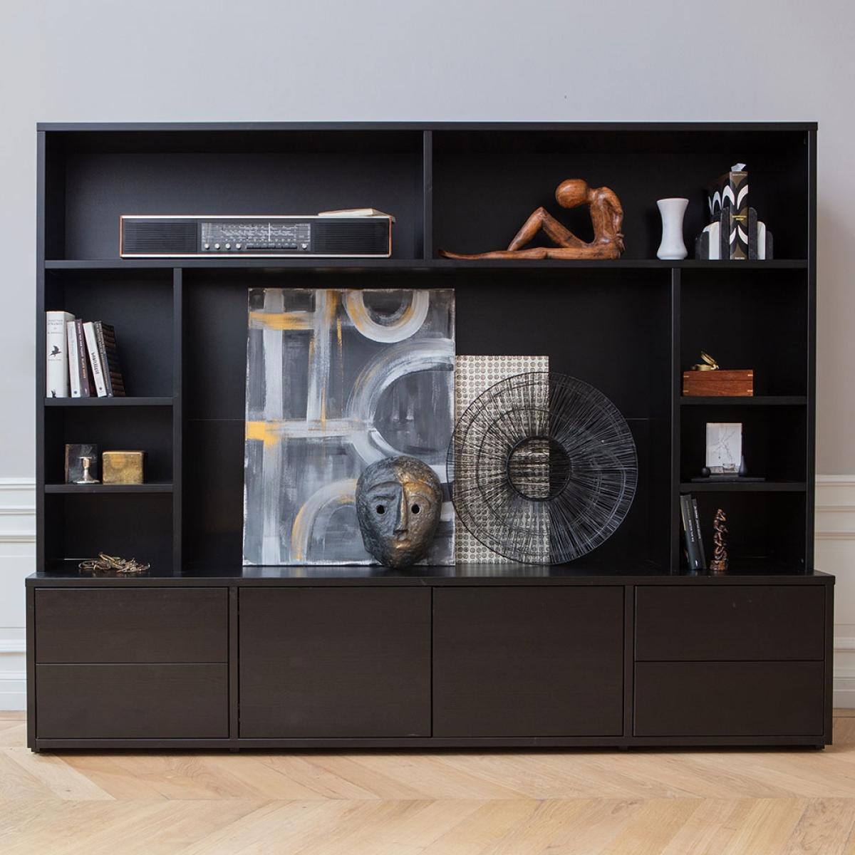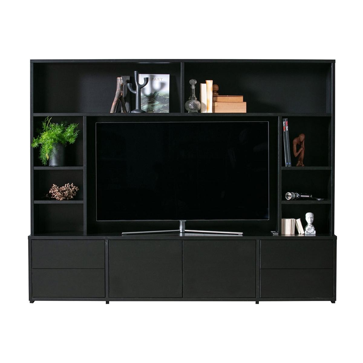 For the ultimate home entertainment storage look no further than the Maxel TV Cabinet from Woood, this large TV unit has space for everything! Shelves, open compartments, cabinets, drawers. Literally, this wall unit has space for everything. Manufactured from pine with a matte black finish, this sleek piece of furniture is sure to look good holding all your bits and bobs. With this storage giant, keeping your electronics neatly tidied away will be easy. Whether you use it to hold your extensive DVD collection or to display your knick knacks, Maxel will be happy to do so.
