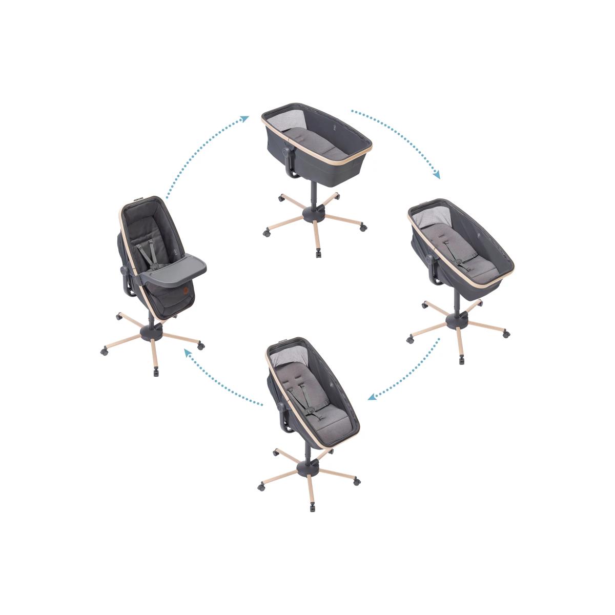 Alba is a stylish all-in-one bassinet, recliner and high chair, designed with wheels to keep your baby next to you throughout the day. From birth to 3 years old, its mobile design allows you to easily move around the home together so your baby can play, eat and nap everywhere in comfort, while you get your jobs done. Alba is made with super-soft 100% recycled fabrics and has an extra thick mattress to ensure the best comfort for your baby. When your baby’s approx. 6 months (9kg), they’re ready to sit up and use the Alba high chair with the Meal Kit. The kit includes a handy water-repellent, machine washable cover, made from Eco Care 100% recycled fabrics, and is easy to keep clean and simply zips on and off. The Tray clips directly onto the Alba frame and the padded seat with two different harness positions ensures your child always has a secure and comfortable seat at the table. The meal kit cover is water-repellent and machine washable, which makes it very easy to keep clean. Key Features: Mobile design allows you to move around the home together Super-soft, premium fabrics with reversible extra comfortable mattress Easy to switch from mode to mode Easy height adjustment (5 positions) Ventilation window for enhanced breathability Easy to disassemble and store Machine washable fabrics Stylish design 5 wheels with breaks To install Alba meal kit, you only have to unzip the main cover and zip the meal kit cover on. The tray is directly clipped on the frame.