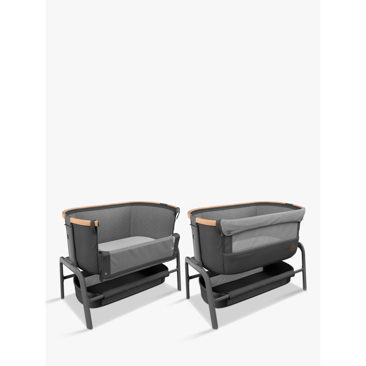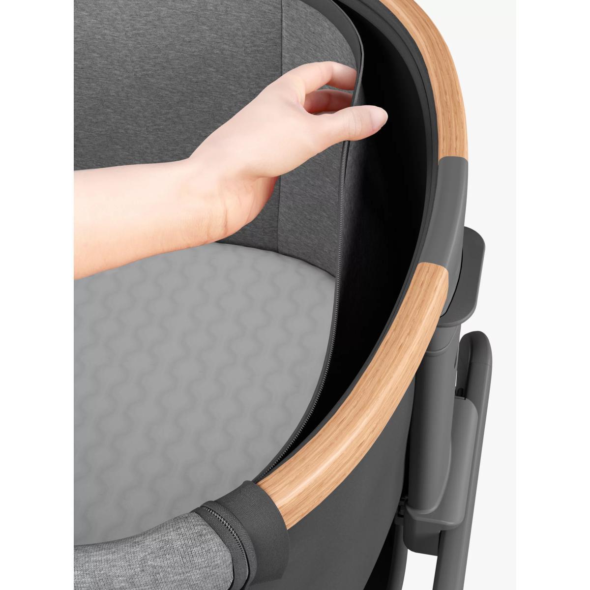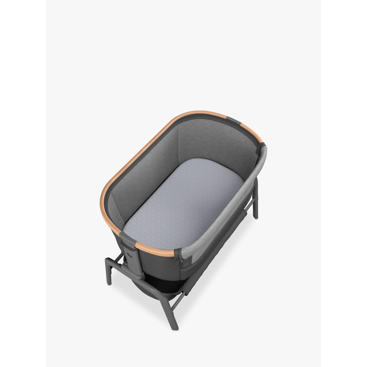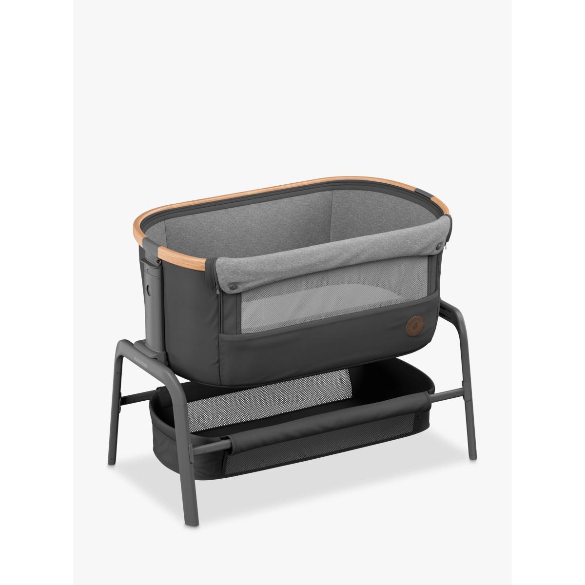 Rest easy knowing that your baby is sleeping in luxury only an arm's reach away with the Maxi-Cosi Iora bedside sleeper - a sophisticated, adjustable crib with an extremely comfortable mattress. Just because it's time to sleep doesn't mean your bonding time has to end. Thanks to the Iora's five different height positions and easy co-sleeping slide function, your baby always fits perfectly next to you. Plus it's easy fold and a convenient travel bag, the crib can also be taken with you whereever you need to go. Whether you need to feed, change a diaper, or even the sheets in the middle of the night, all the essentials are within reach in Iora's large storage basket. When you're ready to give your little one their own space, simply move Iora to the baby's room. Its comfortable mattress and sturdy frame are perfect to double as a stand-alone crib. And your baby can continue sleeping in their own, familiar bed. The benefits of side- sleeping: Suitable from birth - 9kg or 6 months It helps the new born to adjust sleeping-awake times. It helps with breastfeeding for mothers. It reassures parents and makes the child feel safe. It strengthens the bond between child and parents and it helps the child to grow more self-confident and sociable. Sleeping in the same room (but not in the same bed) reduces the risk of SIDS. Matching sheets available (sold separately)