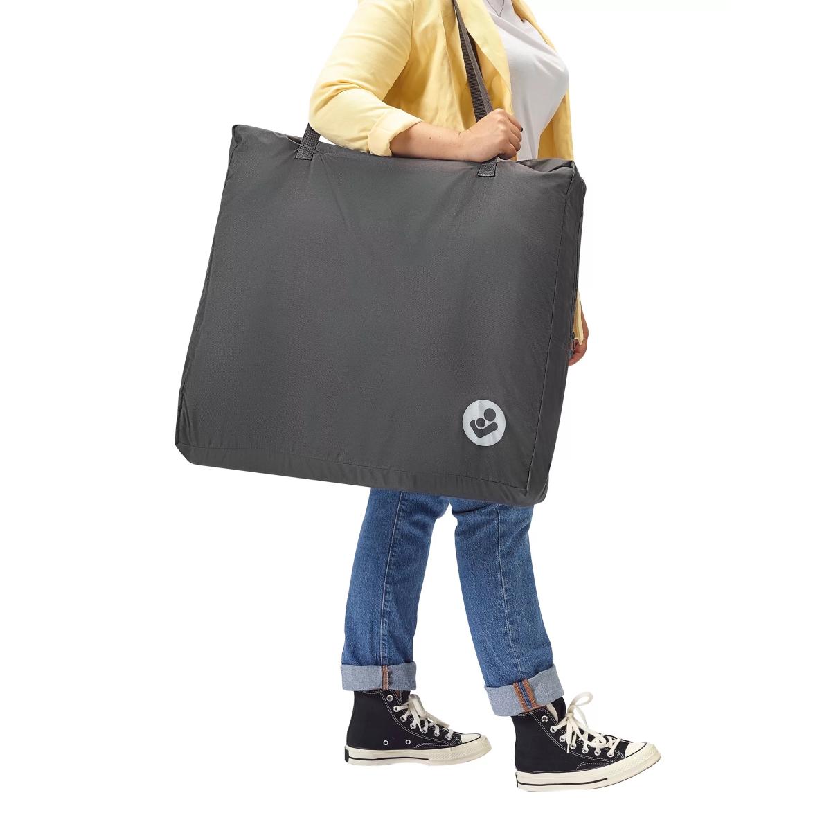 As a parent, you want to show your little one the world and with the Maxi-Cosi Iris travel cot, taking them with you has never been easier. The Maxi-Cosi Iris compact travel cot is the perfect travel companion whether for a sleepover or a longer holiday. The travel cot can be adapted by raising or lowering the mattress base and with its extra comfortable mattress your little one will fall asleep in no time. Mesh sides allow for ventilation and visibility of your child at all times, whilst its compact fold and transport bag allow for easy carrying and storage. Because appearances also count, the luxurious finish makes Maxi-Cosi Iris one of the best-looking travel cots out there. Suitable from birth up to approximately 3 years, or until your child can climb out of the travel cot. Key Features: Two base positions: The higher level for newborn prevents you from straining your back when putting your baby in, and taking your baby out. Once your little one learns how to sit up, switch the cot to the lower position. Folds compactly, making it easier to travel with and more convenient to store away Super lightweight, weighing less than six kilos, making it easier to carry The fabrics easily zip on and off and are machine washable The wide top opening gives you easier access to your baby or toddler Comes with a thick foam mattress that is extra comfortable and will have your little one asleep in no time Soft, premium fabrics create the cosiest environment for your little one to snooze in Airy design that lets you keep an eye on your child, and keeps them comfortable with plenty of ventilation With luxurious finishing and elegant colour, the Iris is one of the best-looking travel cot out there Good to know: The size of the mattress included is 52 x 91 x 4cm.