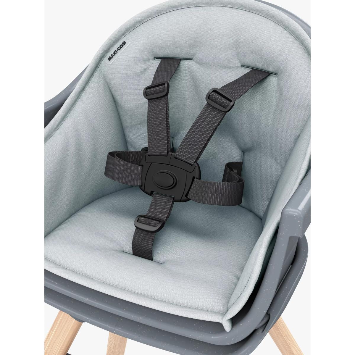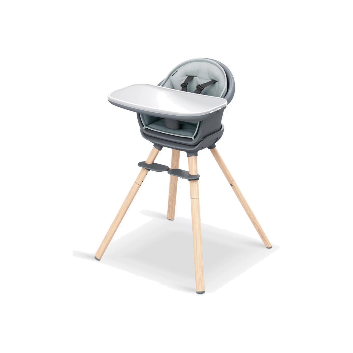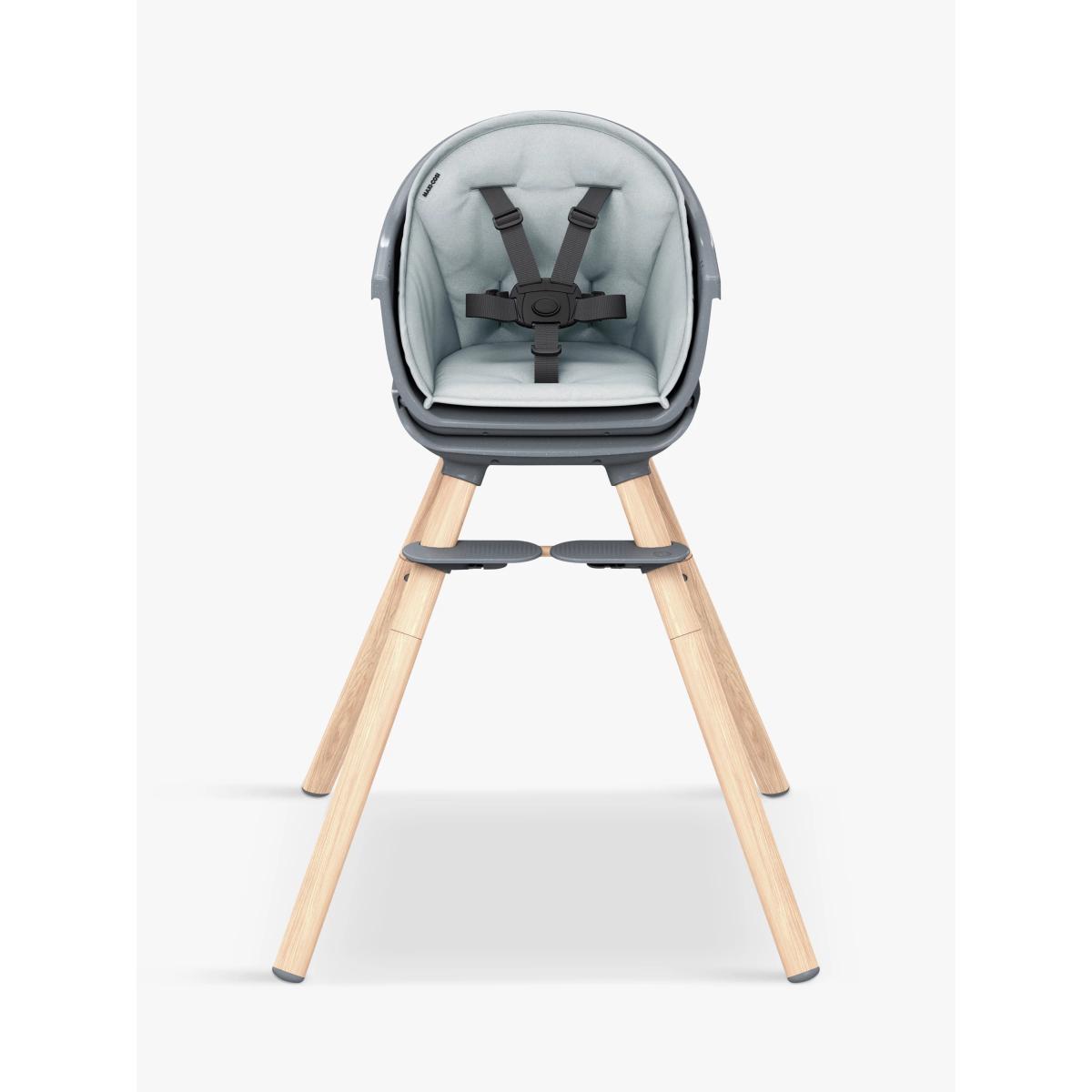 For a versatile piece that saves on space and grows with your child without having to compromise on style, choose this Moa highchair from Maxi-Cosi. A stylish 8-in-1, multi-use highchair designed for your child over their first 5 years. As they develop, MOA adapts and transforms from a highchair, to a low stool, booster seat, toddler stool, then a handy desk and seat. The perfect place for your child to eat, discover & grow. Uniquely changeable, MOA reconfigures in 8 different ways, so rather than having to buy 8 separate space-hogging products, you only need one highchair. Every Mum or Dad knows feeding time is a messy business but with its water-repellant machine-washable inlay, dishwasher-safe tray insert and washable harness, MOA is super-quick & easy to keep squeaky-clean. With its contemporary lines, minimal design and elegant colourways, MOA looks super-sleek whatever mode it's in. There are no hidden crevices for food to get stuck in and with luxurious finishes and performance fabrics, MOA is a design piece that you'll want to show off, not hideaway. You don't need any screws or a degree in engineering to reconfigure it. The MOA's modularity means it's easy to transform to suit your baby's next development stage. The easily adjustable footrest and harness ensures your baby's comfort. Constantly reinventing itself over five years, MOA grows with your child.