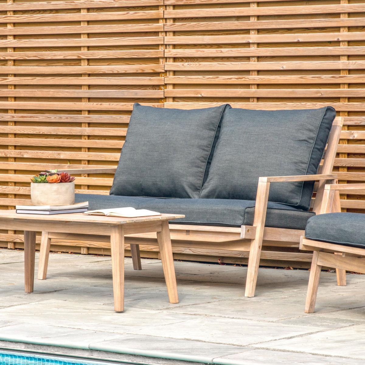 I love this garden sofa for its sleek, natural timber frame combined with the soft, neutral upholstery - making it versatile for a variety of outdoor settings. It works particularly well in contemporary or minimalist gardens, but can also blend seamlessly into more traditional al fresco spaces. Practical styling tips include complementing it with textured cushions in earthy or muted tones to add comfort and visual interest. Pair with a neutral or patterned outdoor rug and a few potted plants to create a inviting, cohesive outdoor lounge area. Its compact size makes it ideal for smaller patios or balcony gardens, offering a cosy yet stylish seating option that feels relaxed and inviting.