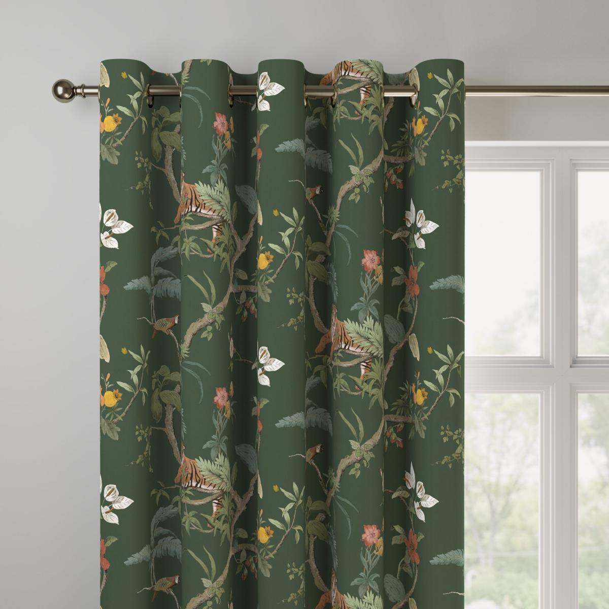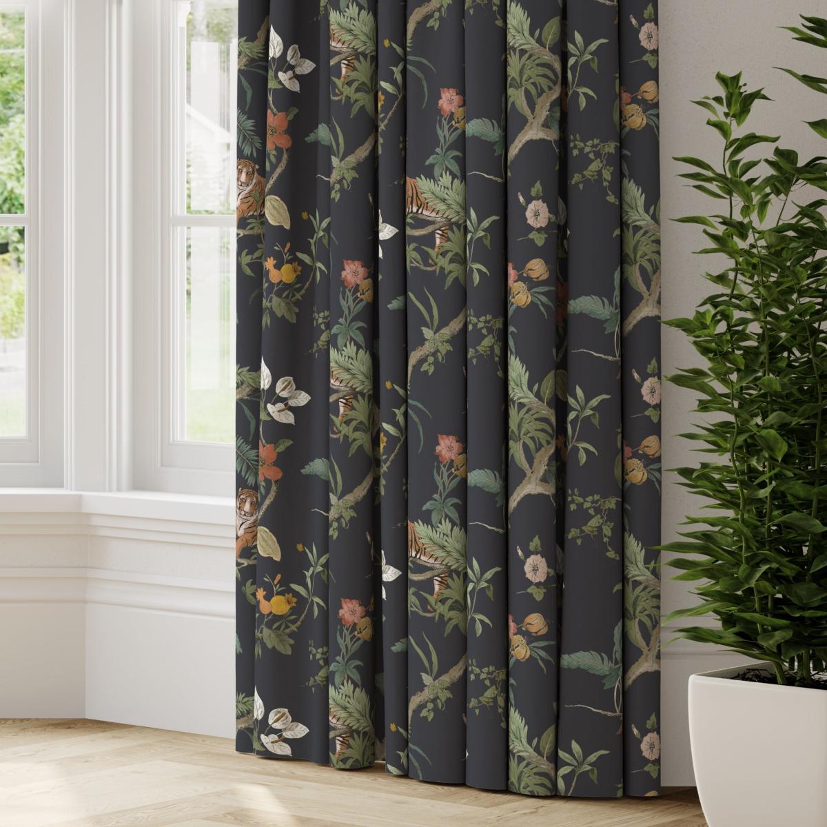Perfect for those who think less does not mean more, this beautiful statement design is digital printed on a luxurious velvet fabric and showcases a jungle-inspired design and features a hand drawn tiger. The Maximalist Bengal print is presented on a sophisticated olive or slate ground for a subtle contrast. Our Web Exclusive Maximalist range features 12 stunning, unique designs for curtains, upon a beautiful velvet fabric base, and includes a wide range of styles. Introducing wildlife and storytelling into your décor, with designs like Bengal, Cockatoo, Wagtail and Passion, will create a stunning focal point in any room. Inspired by nature, Maximalist also includes ‘full of life’ wildflower scenery fabrics such as Magnolia, Iris, Jacobean, Tropical and Palm. Displaying bright and wonderful colours upon soft velvet fabric bases will add drama and movement to any room. For windows that cannot wait, shop our range of. Ready Made Curtains. Please note: you measure for pinch pleat curtains in the same way as pencil pleat curtains. Online Only:. This product is only available to order online. Our expert virtual consultants can provide advice on measuring/fitting and style tips and our free samples can be ordered online to be delivered straight to your home to help you choose a fabric that's right for you. Once you're happy, simply place your order online and we'll do the rest.