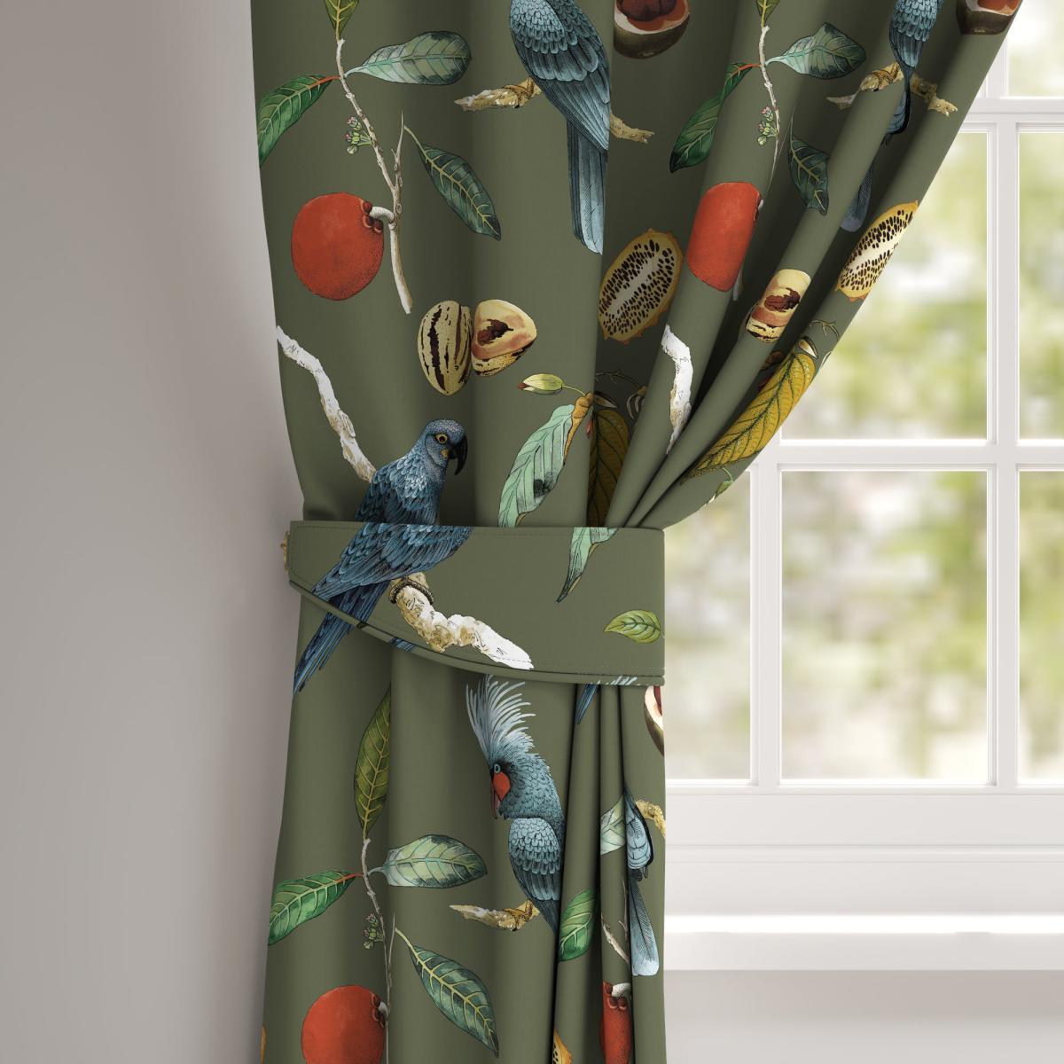 Our tiebacks are crafted with durable materials and is a great way to complement and finish off your Made to Measure curtains. The intricately hand painted cockatoo and foliage placement design is bold, fun, and perfect for a truly showstopping look in your home. Our Web Exclusive Maximalist range features 12 stunning, unique designs for curtains, upon a beautiful velvet fabric base, and includes a wide range of styles. Introducing wildlife and storytelling into your décor, with designs like Bengal, Cockatoo, Wagtail and Passion, will create a stunning focal point in any room. Inspired by nature, Maximalist also includes ‘full of life’ wildflower scenery fabrics such as Magnolia, Iris, Jacobean, Tropical and Palm. Displaying bright and wonderful colours upon soft velvet fabric bases will add drama and movement to any room. Please note:. Our Made to Measure Tieback is sold as a single, for a pair you will need to add 2 to your basket. Need some support with your creating Made to Measure tieback? Feel free to book an appointment with one of our experts. Just. Online Only:. This product is only available to order online. Our expert virtual consultants can provide advice on measuring/fitting and style tips and our free samples can be ordered online to be delivered straight to your home to help you choose a fabric that's right for you. Once you're happy, simply place your order online and we'll do the rest.