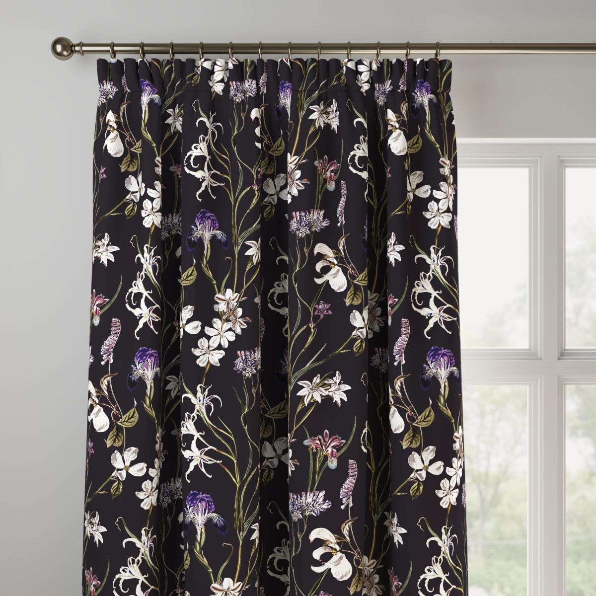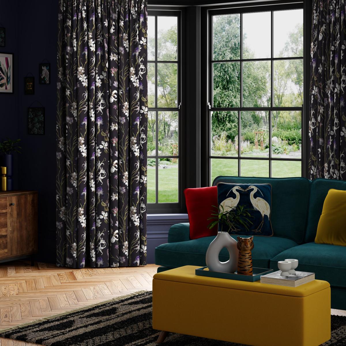 The delightful design of the beautiful hand painted blooms in soft, light colours are placed on an opulent dark ground for a stylish contrast. This subtle, digitally printed design and soft velvet fabric brings about a peaceful atmosphere that will add extra warmth to any home. Our Web Exclusive Maximalist range features 12 stunning, unique designs for curtains, upon a beautiful velvet fabric base, and includes a wide range of styles. Introducing wildlife and storytelling into your décor, with designs like Bengal, Cockatoo, Wagtail and Passion, will create a stunning focal point in any room. Inspired by nature, Maximalist also includes ‘full of life’ wildflower scenery fabrics such as Magnolia, Iris, Jacobean, Tropical and Palm. Displaying bright and wonderful colours upon soft velvet fabric bases will add drama and movement to any room. For windows that cannot wait, shop our range of. Ready Made Curtains. Please note: you measure for pinch pleat curtains in the same way as pencil pleat curtains. Online Only:. This product is only available to order online. Our expert virtual consultants can provide advice on measuring/fitting and style tips and our free samples can be ordered online to be delivered straight to your home to help you choose a fabric that's right for you. Once you're happy, simply place your order online and we'll do the rest.