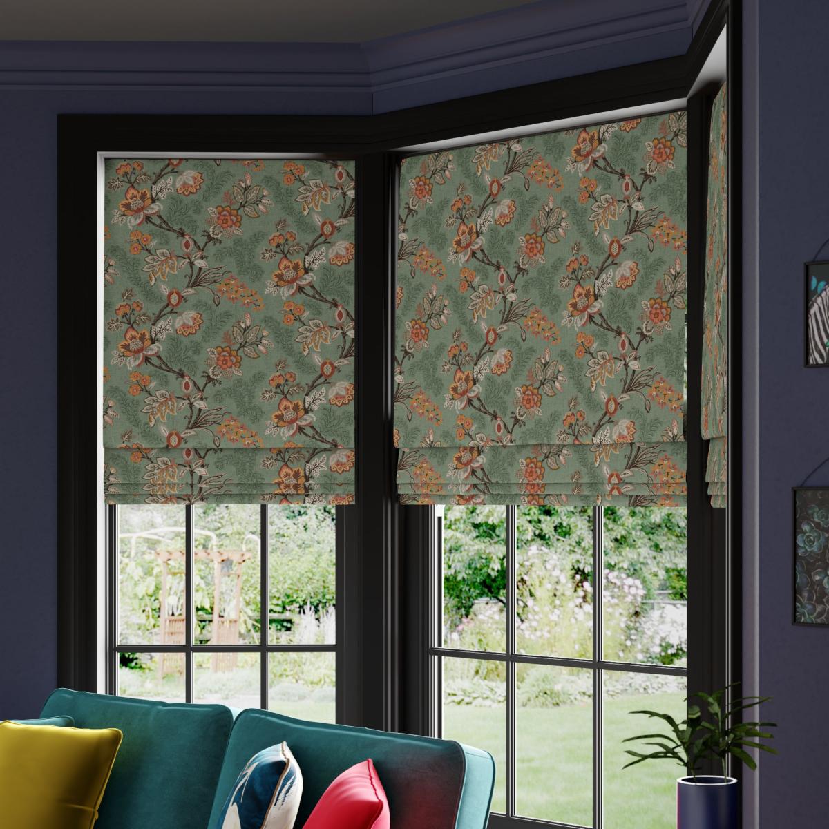 Boasting a gorgeous, Jacobean era inspired design, this statement print is placed upon a sophisticated fern green ground to complement the lighter colours of the intricate design and create a subtle contrast that will bring your home to life. Our Web Exclusive Maximalist range features 12 stunning, unique designs for curtains, upon a beautiful velvet fabric base, and includes a wide range of styles. Introducing wildlife and storytelling into your décor, with designs like Bengal, Cockatoo, Wagtail and Passion, will create a stunning focal point in any room. Inspired by nature, Maximalist also includes ‘full of life’ wildflower scenery fabrics such as Magnolia, Iris, Jacobean, Tropical and Palm. Displaying bright and wonderful colours upon soft velvet fabric bases will add drama and movement to any room. Choosing your lining:. Choosing your fitting type:. ;. Choosing which side you’d like the operating chain:. Child Safety:. We add clips to the back of our roman blinds to attach the cords to the fabric. They also double up as a child safety feature. If pressure is exerted the clips will detach to prevent the risk of strangulation. Please read our. Blinds Safety Guide. For more information. If the clips detach accidentally during normal use, they can be easily re-clipped back into place. Online Only:. This product is only available to order online. Our expert virtual consultants can provide advice on measuring/fitting and style tips and our free samples can be ordered online to be delivered straight to your home to help you choose a fabric that's right for you. Once you're happy, simply place your order online and we'll do the rest.