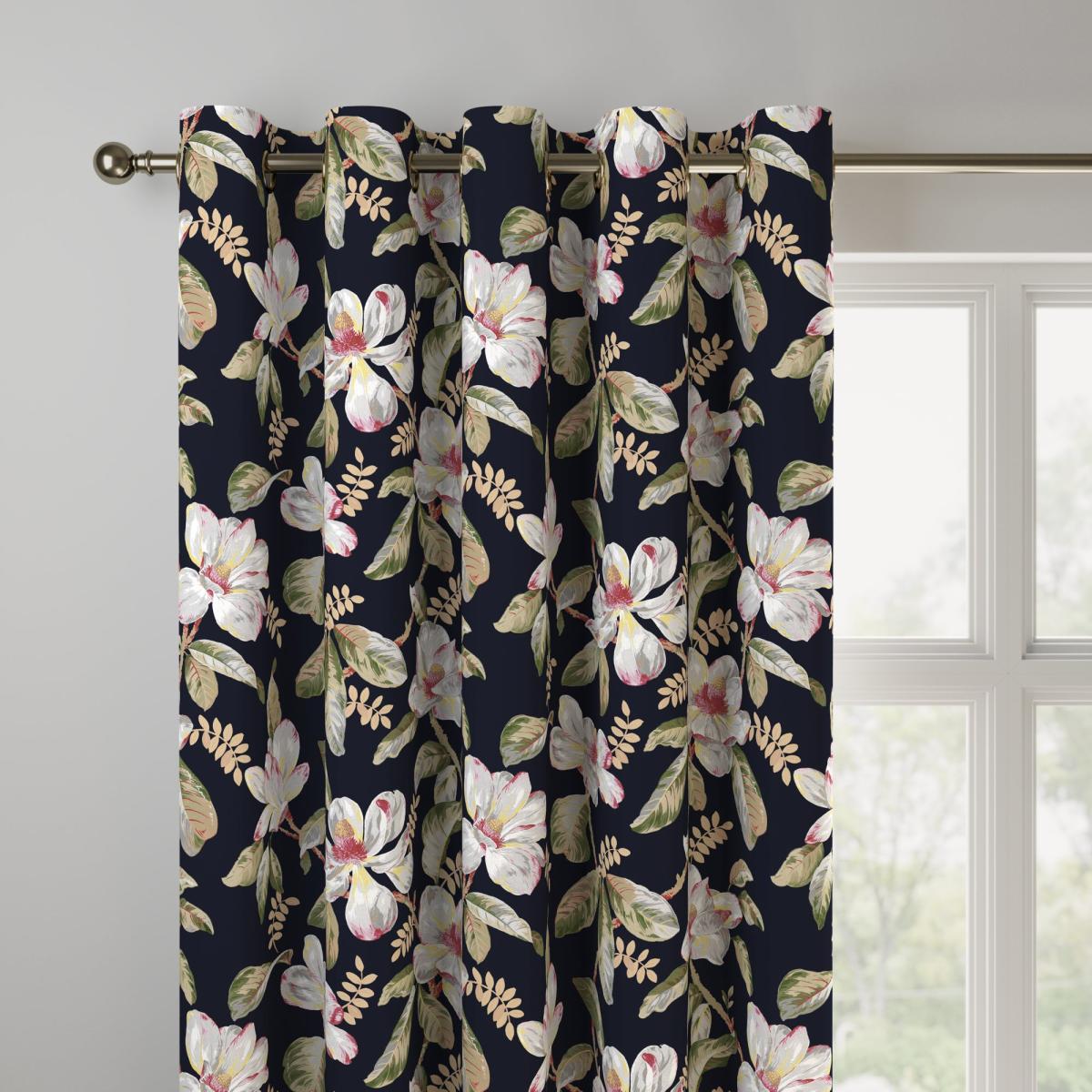 A gorgeous, soft magnolia trail design is digitally printed on a rich black ground and soft velvet fabric for an elegant, luxe look. This showstopping delicate floral print makes a statement and brings energy to any room. Our Web Exclusive Maximalist range features 12 stunning, unique designs for curtains, upon a beautiful velvet fabric base, and includes a wide range of styles. Introducing wildlife and storytelling into your décor, with designs like Bengal, Cockatoo, Wagtail and Passion, will create a stunning focal point in any room. Inspired by nature, Maximalist also includes ‘full of life’ wildflower scenery fabrics such as Magnolia, Iris, Jacobean, Tropical and Palm. Displaying bright and wonderful colours upon soft velvet fabric bases will add drama and movement to any room. For windows that cannot wait, shop our range of. Ready Made Curtains. Please note: you measure for pinch pleat curtains in the same way as pencil pleat curtains. Online Only:. This product is only available to order online. Our expert virtual consultants can provide advice on measuring/fitting and style tips and our free samples can be ordered online to be delivered straight to your home to help you choose a fabric that's right for you. Once you're happy, simply place your order online and we'll do the rest.