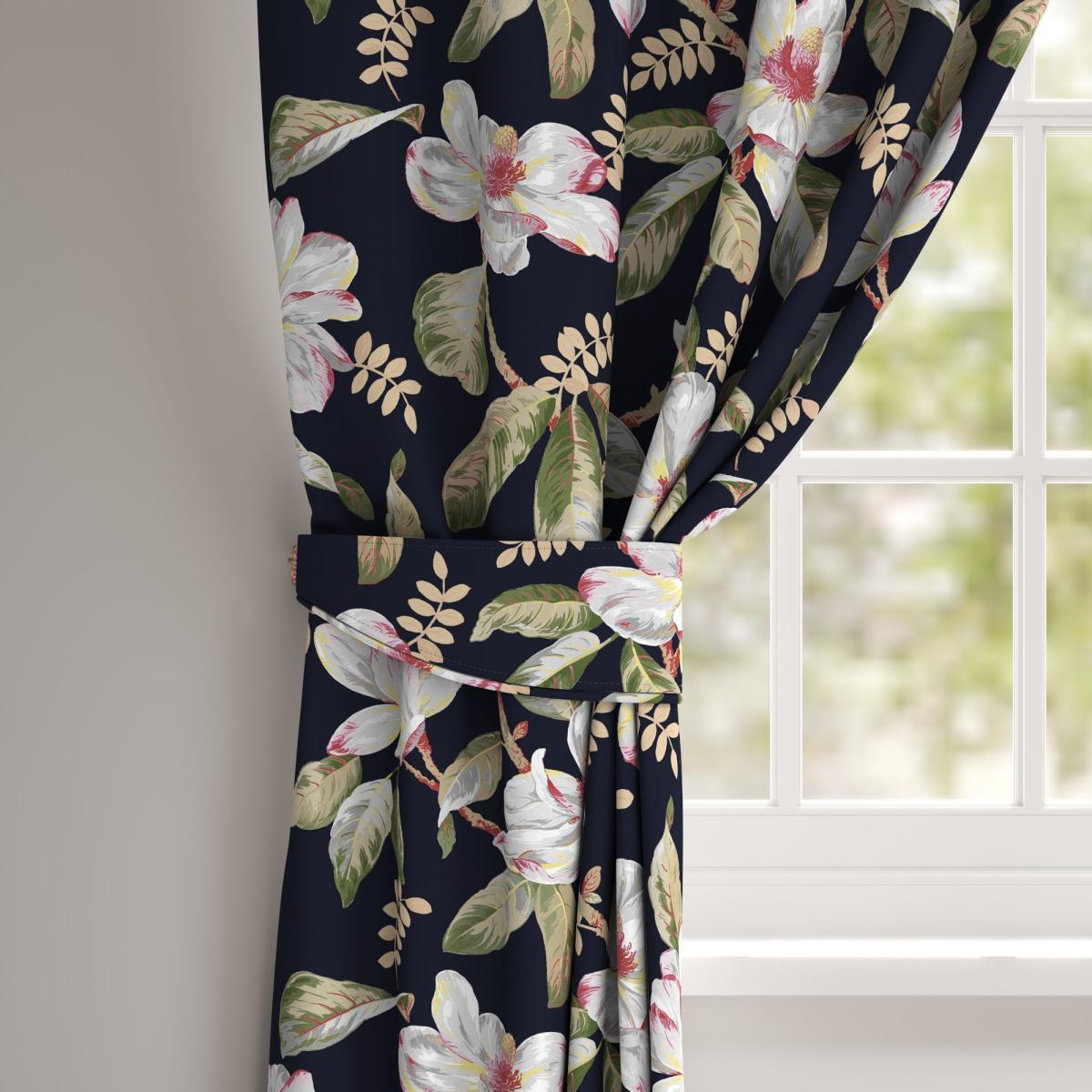 Our tiebacks are crafted with durable materials and is a great way to complement and finish off your Made to Measure curtains. This gorgeous magnolia design is digitally printed on a rich black ground for a luxe look. Our Web Exclusive Maximalist range features 12 stunning, unique designs for curtains, upon a beautiful velvet fabric base, and includes a wide range of styles. Introducing wildlife and storytelling into your décor, with designs like Bengal, Cockatoo, Wagtail and Passion, will create a stunning focal point in any room. Inspired by nature, Maximalist also includes ‘full of life’ wildflower scenery fabrics such as Magnolia, Iris, Jacobean, Tropical and Palm. Displaying bright and wonderful colours upon soft velvet fabric bases will add drama and movement to any room. Please note:. Our Made to Measure Tieback is sold as a single, for a pair you will need to add 2 to your basket. Need some support with your creating Made to Measure tieback? Feel free to book an appointment with one of our experts. Just. Online Only:. This product is only available to order online. Our expert virtual consultants can provide advice on measuring/fitting and style tips and our free samples can be ordered online to be delivered straight to your home to help you choose a fabric that's right for you. Once you're happy, simply place your order online and we'll do the rest.