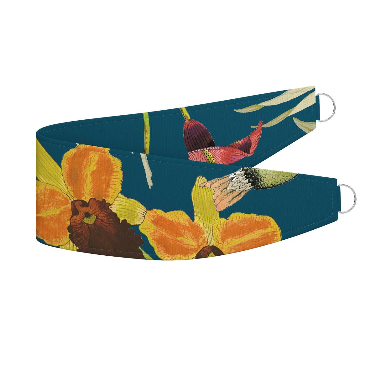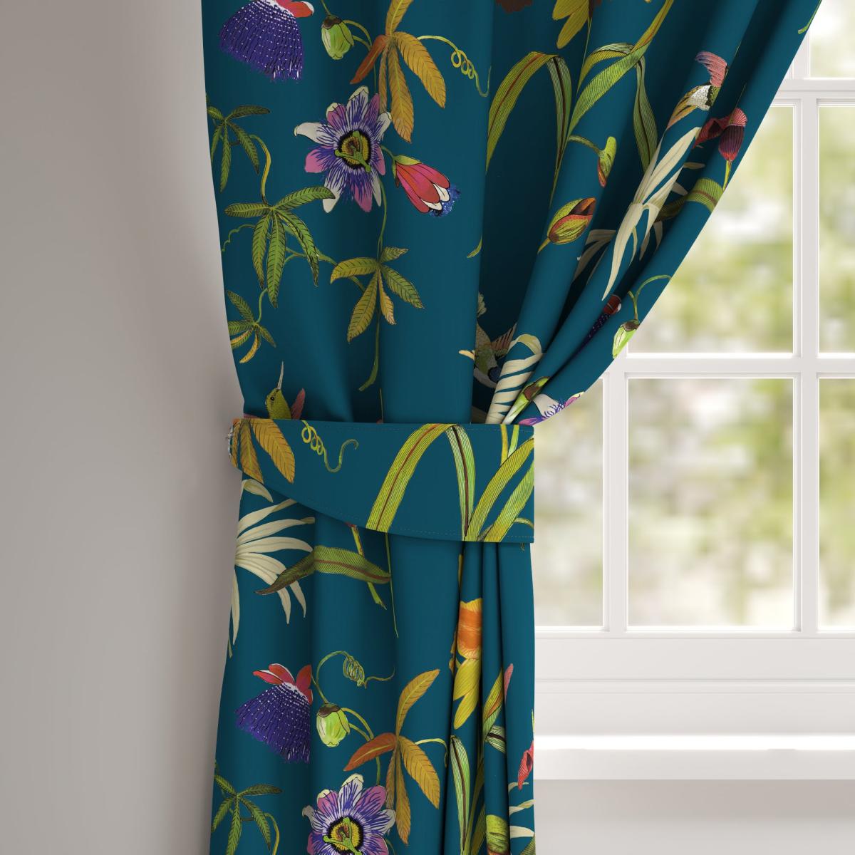 Our tiebacks are crafted with durable materials and is a great way to complement and finish off your Made to Measure curtains. This digitally printed statement fabric features flying hummingbirds and a variety of beautiful, colourful Passiflora flowers on an opulent teal ground. Our Web Exclusive Maximalist range features 12 stunning, unique designs for curtains, upon a beautiful velvet fabric base, and includes a wide range of styles. Introducing wildlife and storytelling into your décor, with designs like Bengal, Cockatoo, Wagtail and Passion, will create a stunning focal point in any room. Inspired by nature, Maximalist also includes ‘full of life’ wildflower scenery fabrics such as Magnolia, Iris, Jacobean, Tropical and Palm. Displaying bright and wonderful colours upon soft velvet fabric bases will add drama and movement to any room. Please note:. Our Made to Measure Tieback is sold as a single, for a pair you will need to add 2 to your basket. Need some support with your creating Made to Measure tieback? Feel free to book an appointment with one of our experts. Just. Online Only:. This product is only available to order online. Our expert virtual consultants can provide advice on measuring/fitting and style tips and our free samples can be ordered online to be delivered straight to your home to help you choose a fabric that's right for you. Once you're happy, simply place your order online and we'll do the rest.