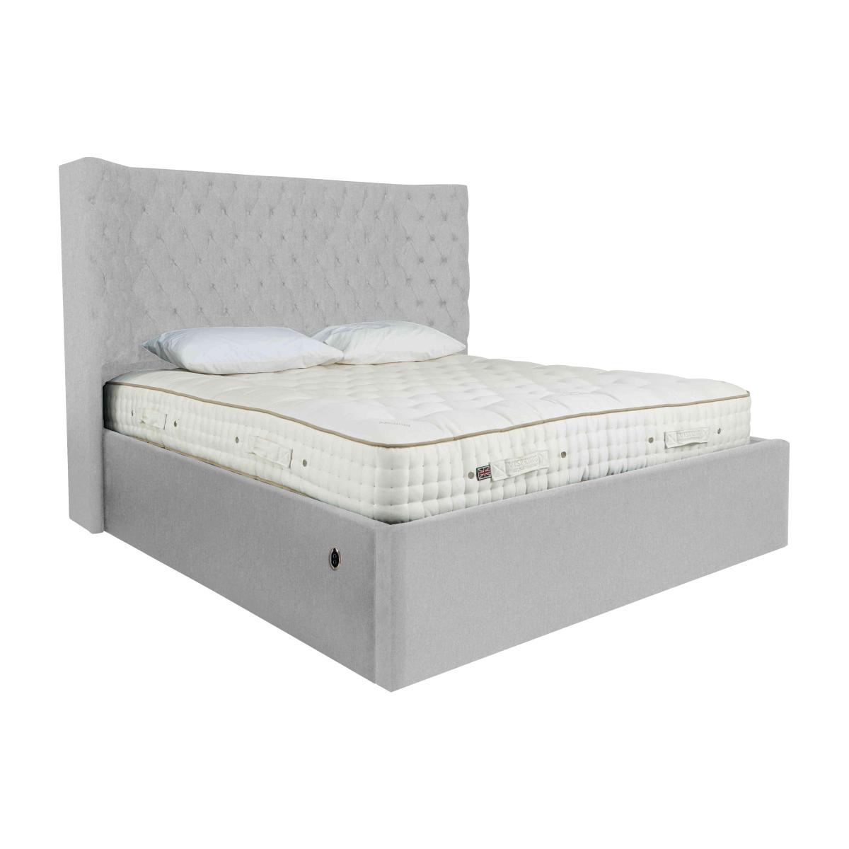Discover a grand luxury bed that takes your relaxation to the max - the Maximus range. It showcases a beautifully diamond-pleated statement headboard in velvet-feel fabric. Enjoy extra storage space with the option of beautifully hidden lift-up storage. Handcrafted in Britain, this luxurious bed frame comes in a choice of captivating colours that allow you to make it uniquely yours. It’s sure to be the new dreamy focal point of your bedroom. Jaw-dropping looks combined with practical storage, that’s the Maximus ottoman bed frame. The diamond-pleated headboard and soft velvet-feel fabric are guaranteed to impress. Why you'll love it Make a statement with this ottoman bed frame. Deep-buttoned statement headboard. High winged headboard with beautiful all-over buttoning. Hidden underbed storage perfect for seasonal clothes and linen. Electric powered lift mechanism for easy access. Available in 30 on-trend colours. Handmade in the UK. What you need to know Available in double, king, and super king sizes. Sprung slatted base on the ottoman bed frame. Mattress sold separately. Clean weekly using a soft brush or vacuum with the curtain attachment. Professional cleaning advised for oil- and grease-based stains. Some fabrics can show wear on areas of more use or in direct sunlight. Available as a standard bed frame.