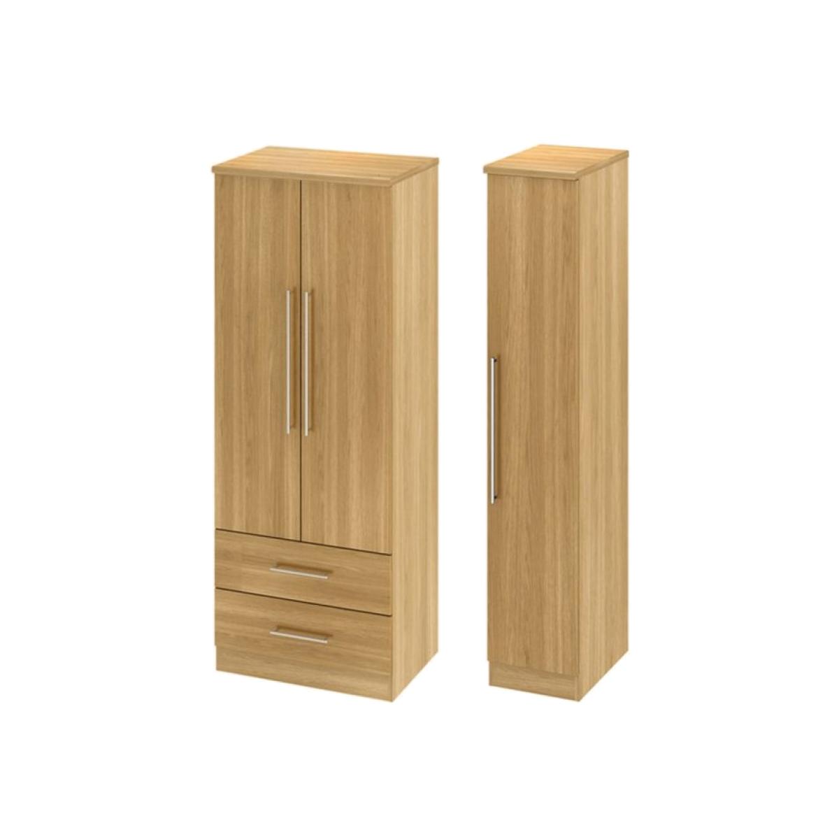 I’m a fan of the Maxwell tall wardrobe for its clean lines and oak-effect finish, which slot neatly into Scandi-inspired, contemporary or even pared-back industrial bedrooms. Its slim profile makes it ideal for narrower alcoves, while the two drawers at the base keep everyday items close to hand. To style it, add a woven basket or two on top for extra storage, then balance the look with matte-black or brass hooks nearby for bags or scarves. Pair it with neutral linens and a simple floor lamp to maintain an uncluttered, functional scheme.