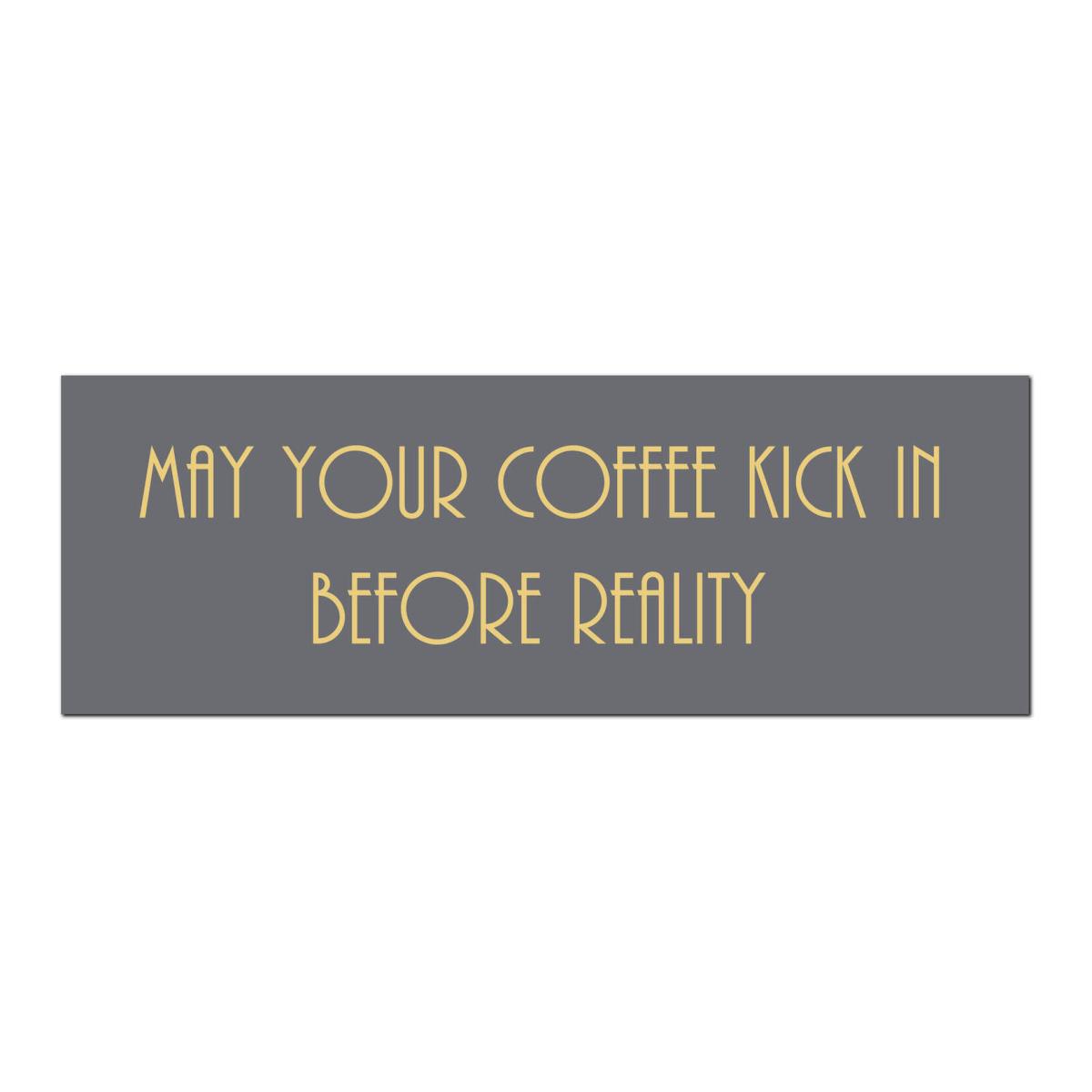 May Your Coffee Kick In Before Reality Gold Foil Plaque Humorous Sign - Grey