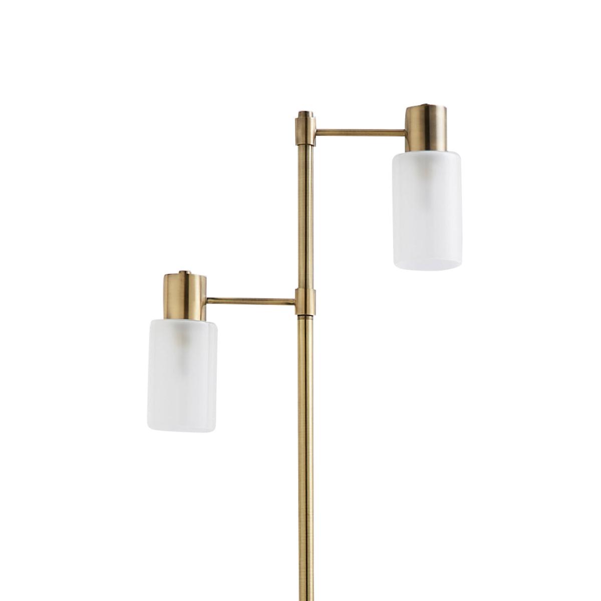 The Maya 2-Light Antique Brass Floor Lamp is a refined and versatile design exclusive to Pagazzi Design. Featuring a sleek stem detail structure in a classic antique brass finish, it’s complemented by two opal frosted glass shades that provide a soft, diffused glow when lit by G9 bulbs. Slim in depth, this elegant floor lamp is ideal for narrower spaces such as hallways, or can be paired with matching fittings from the Maya range to create a cohesive look in a living or dining room. It includes a foot switch for convenient operation and is double insulated for added safety. A stylish blend of practicality and timeless design.