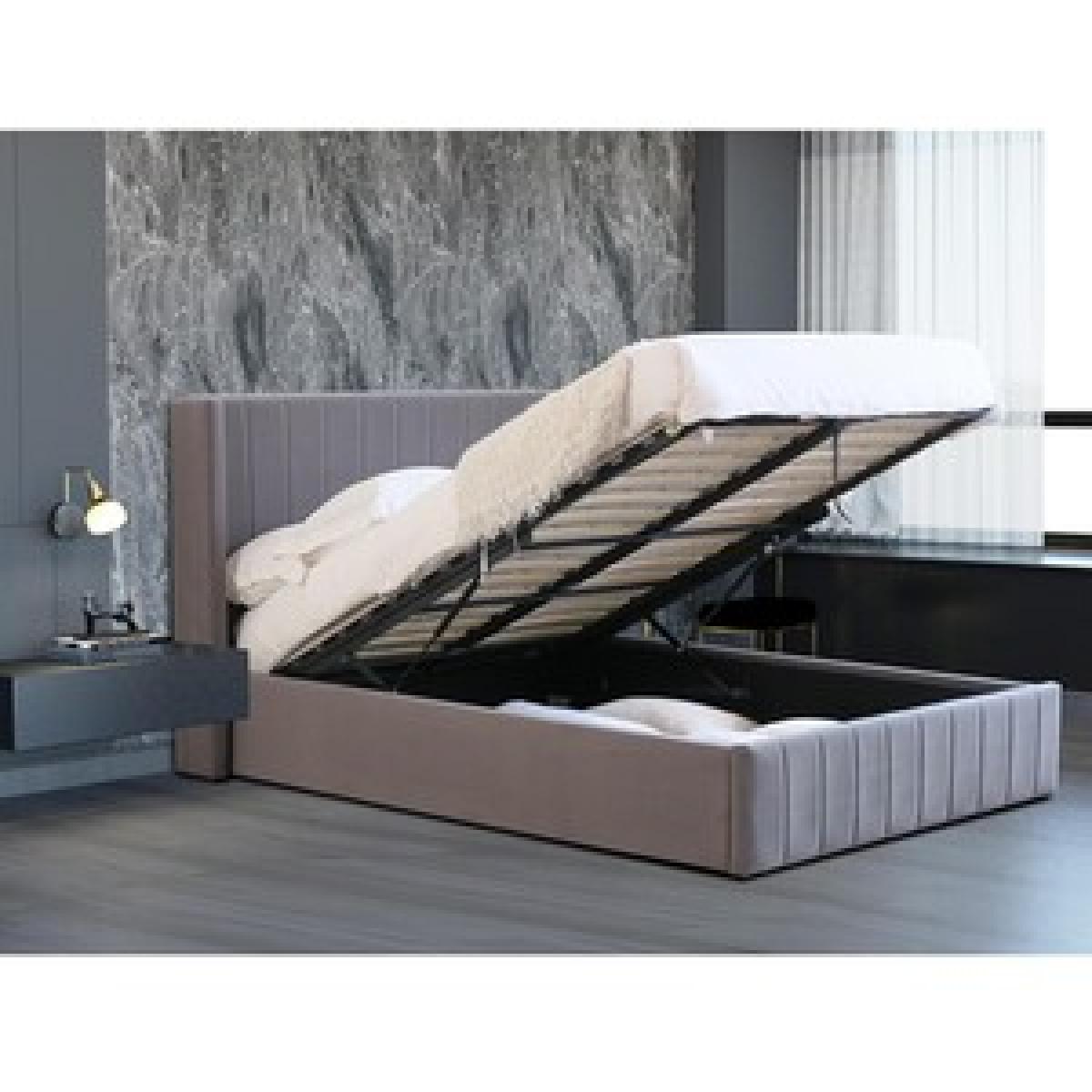 Full of simple and sleek style, the Maya Ottoman Bed will bring a sense of grace to your bedroom. Featuring a grey velvet covering across the lower base and headboard, it will effortlessly match any colour scheme in your home. This bed is designed with ottoman storage, ideal for keeping bedsheets or out of season clothes to help you keep your bedroom neat and tidy. The high rise headboard adds a grande touch, making it the perfect addition to a master bedroom. This bed is built from sturdy yet affordable materials, allowing you to bring high-class elegance into your home for a reasonable price. It will prove easy to assemble, leading to a beautiful night's sleep the first time you try it and every night thereafter.