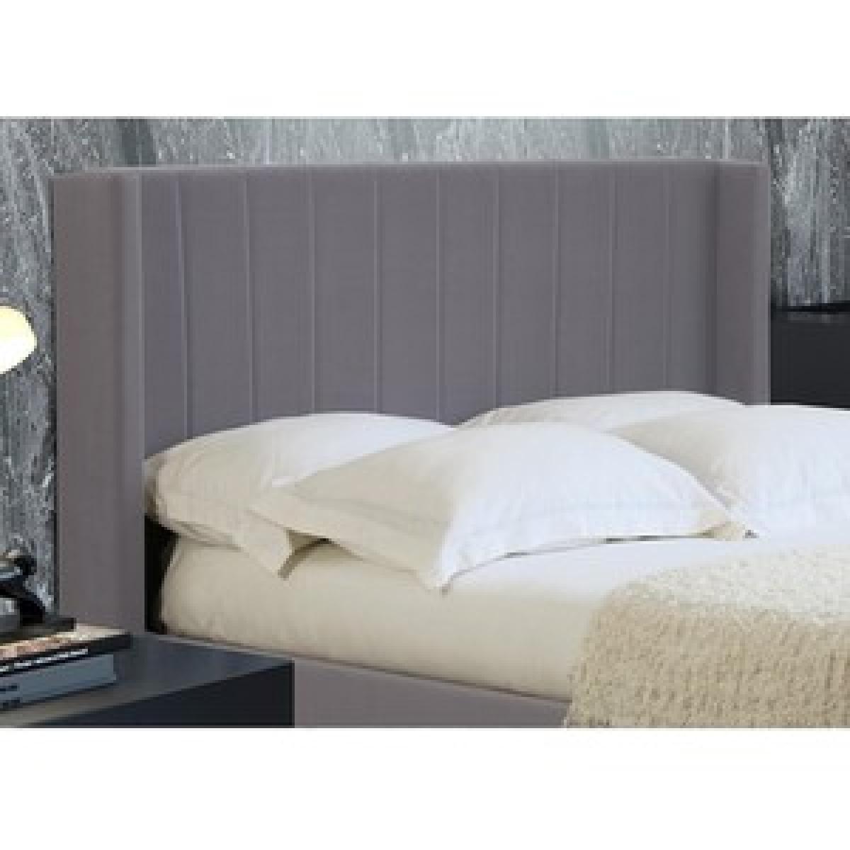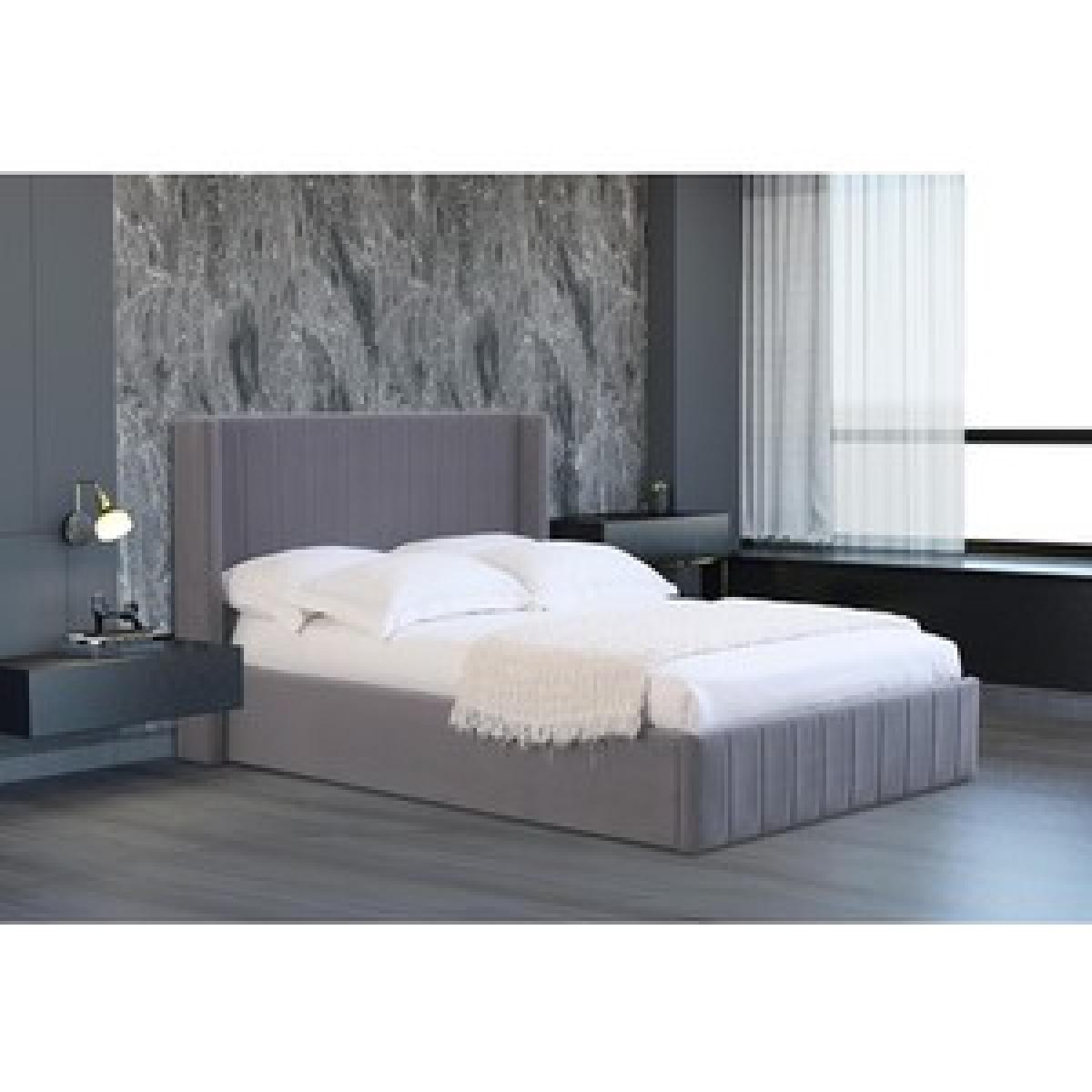 Full of simple and sleek style, the Maya Ottoman Bed will bring a sense of grace to your bedroom. Featuring a grey velvet covering across the lower base and headboard, it will effortlessly match any colour scheme in your home. This bed is designed with ottoman storage, ideal for keeping bedsheets or out of season clothes to help you keep your bedroom neat and tidy. The high rise headboard adds a grande touch, making it the perfect addition to a master bedroom. This bed is built from sturdy yet affordable materials, allowing you to bring high-class elegance into your home for a reasonable price. It will prove easy to assemble, leading to a beautiful night's sleep the first time you try it and every night thereafter.