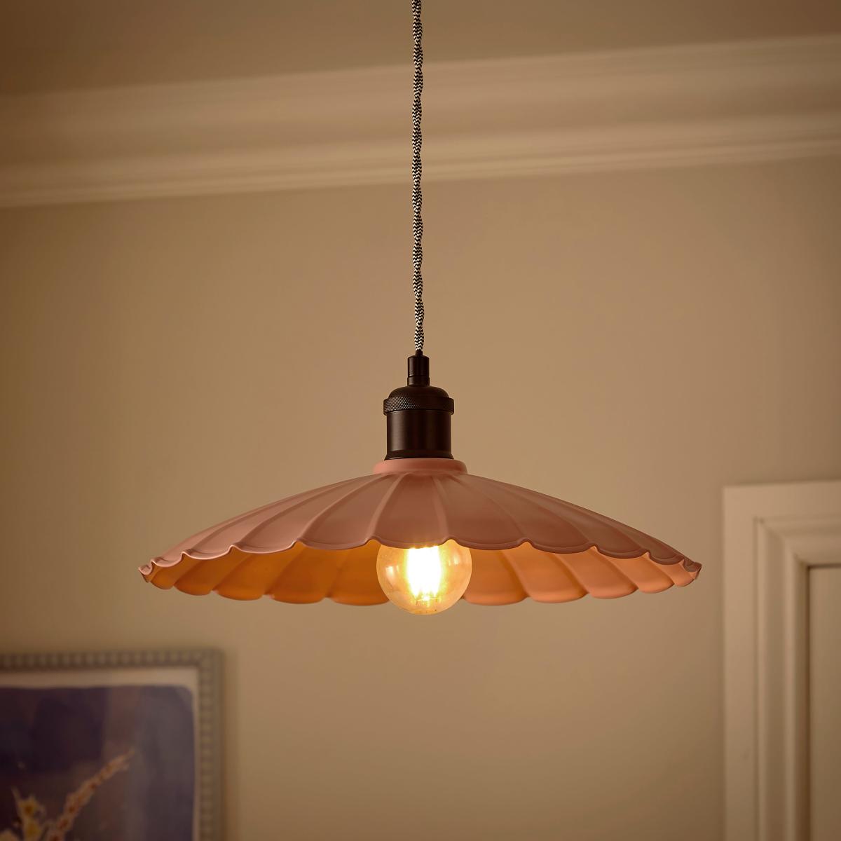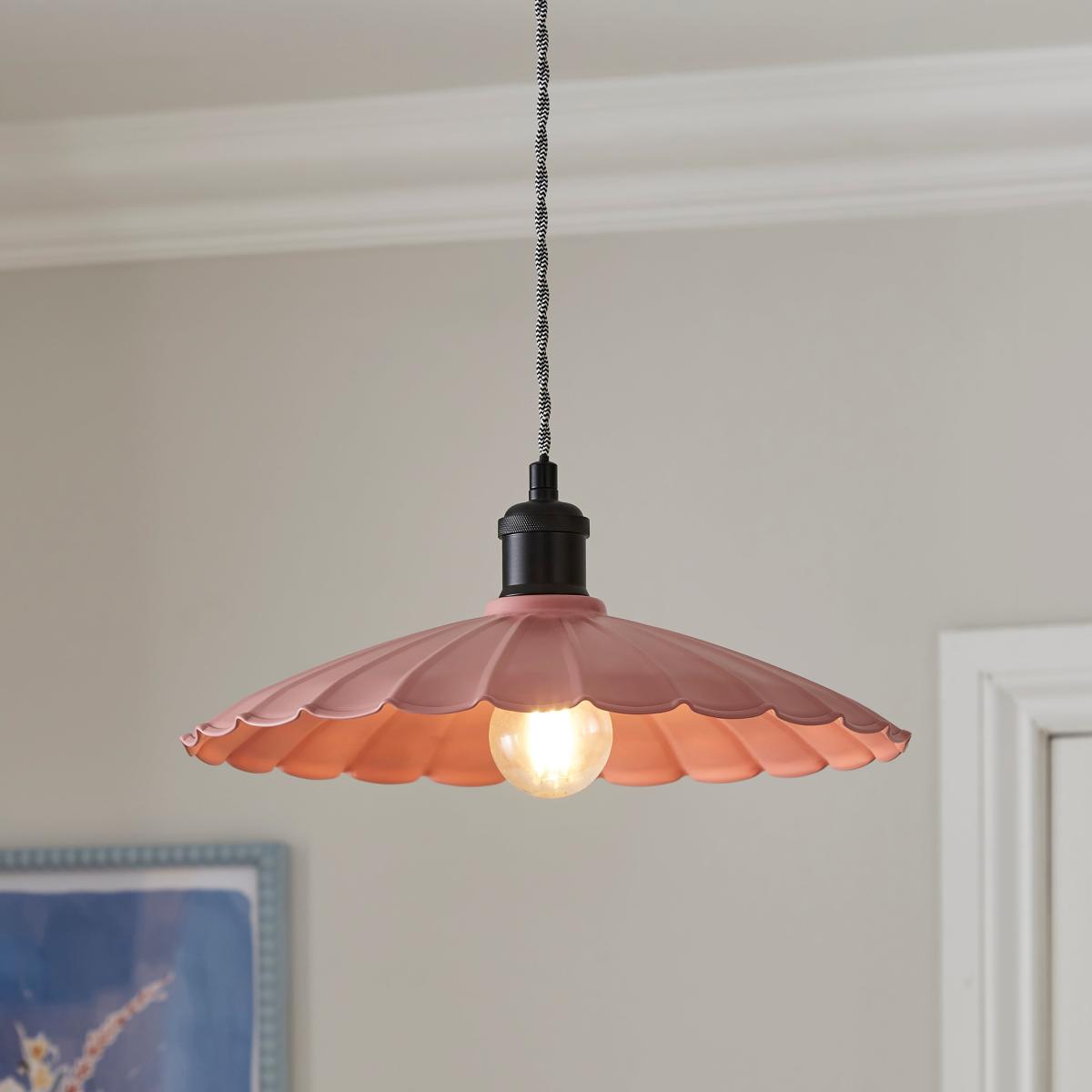 I love this pendant shade for its contemporary yet charming design; the scalloped metal adds a subtle decorative touch without overpowering the space. It works particularly well in eclectic, vintage-inspired, or modern country interiors, adding warmth and texture. For styling, consider pairing it with warm or soft bulbs to enhance the rose hue and keep the overall aesthetic inviting. It’s a versatile piece that can bring character to kitchens, dining areas, or cosy living rooms, especially when hung at different heights to create visual interest. Practical tip: keep it cleaned regularly to maintain its colour and finish, as the metal’s tactile quality really shines with a bit of upkeep.