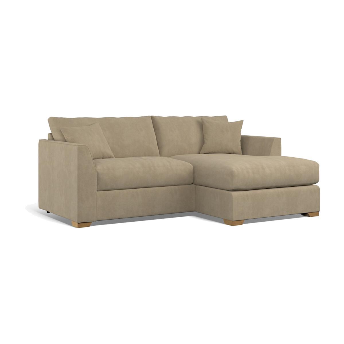 Put your feet up and S-T-R-E-T-C-H. Deep, plump cushions and rounded shapes make the Maya the sofa for sinking into. Envelop yourself in the laid back curves, it’s the perfect fit for family living and lounging. Choose from our soft brushed fabric for ultimate coziness, or woven for a textured look. With matching scatter cushions for extra comfort and style. The Maya reversible chaise sofa offers great flexibility and can be transformed from a left to right hand chaise simply by exchanging the seat/back cushions from left to right and move the footstool base to support your new right hand chaise. All made to order sofas are carefully manufactured in the UK.Each hardwood frame is dowelled, glued, and screwed before being paired with the finest fabrics and fillings. And it doesn't stop there - for customer peace of mind and safety, all frames and fabrics are rigorously examined, inspected, and tested to the highest standards. Product Specifications:. Product Dimensions: L152cmxW214cmxH9. 0cm. Fabric: Soft Brushed - 100% Polyester. Feet: Mid Oak. Scatter Cushions: 2 Fibre filled Scatter Cushions included in matching fabric. Fibre filled backs for added comfort. Reversible fibre filled seat cushions for support & comfort. Seat interior with a hand-rolled carded fibre that provides both comfort and a relaxed feel. Superloop back springs. Serpentine seat springs & silent wire. Care Guide :To improve the longevity of your hand-made furniture, we recommend rotating cushions (where applicable).For further information on maintaining your furniture please refer to the care guide located under the seat platform. Packaged Dimensions: 201cmx97cmx101cm - Please remember to measure your available space before ordering. The Maya Range is also available in Woven & Textured Woven in a variety of colours. This product will be dispatched by one of our trusted suppliers. You’ll be contacted by their selected courier about your delivery. Your product will be delivered to your room of Choice. All multi part items and feet will be assembled once delivered.