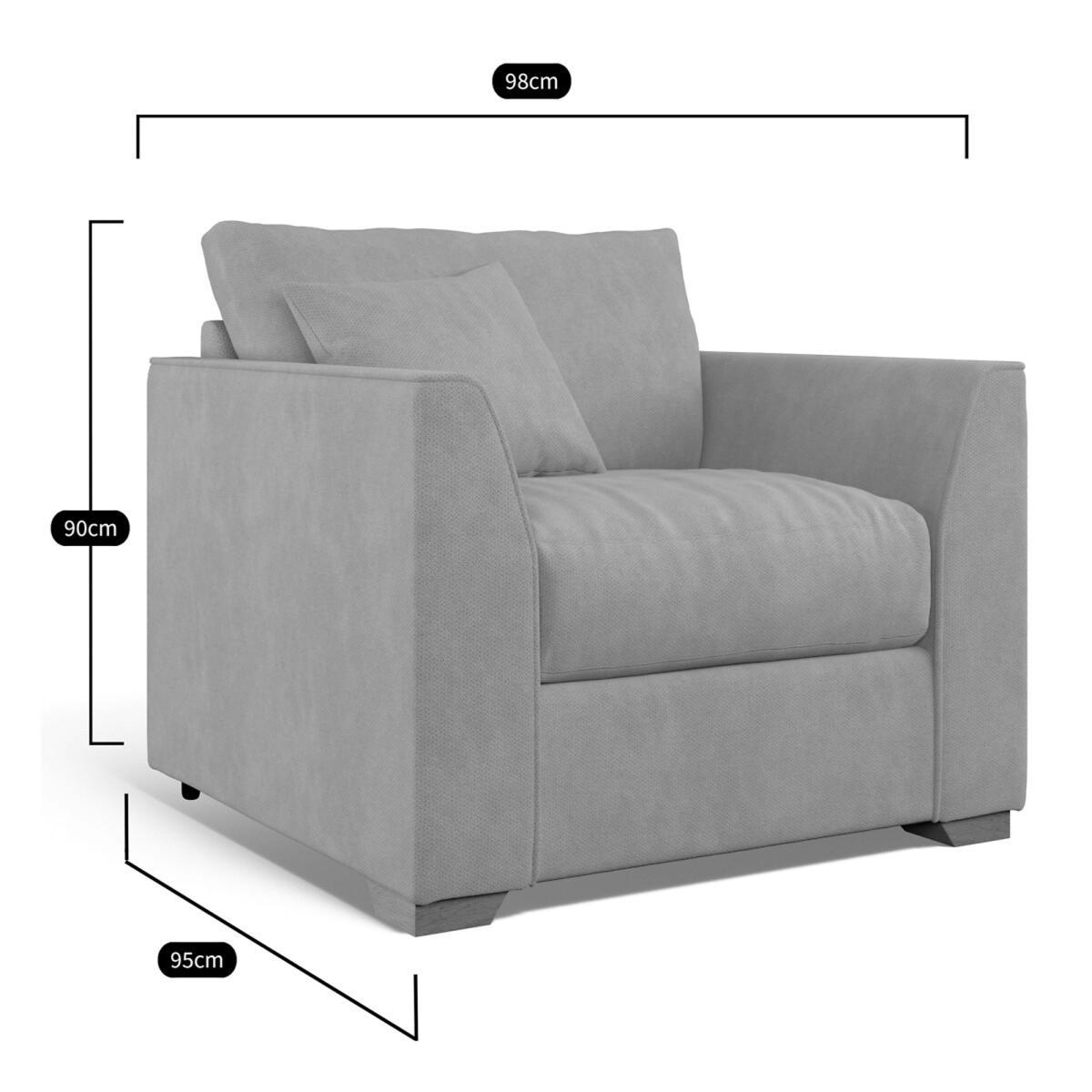 Deep, plump cushions and rounded shapes make the Maya the armchair for sinking into. Envelop yourself in the laid back curves, it’s the perfect fit for family living and lounging. Choose from our soft brushed fabric for ultimate coziness, or woven for a textured look. All made to order sofas are carefully manufactured in the UK.Each hardwood frame is dowelled, glued, and screwed before being paired with the finest fabrics and fillings. And it doesn't stop there - for customer peace of mind and safety, all frames and fabrics are rigorously examined, inspected, and tested to the highest standards. Product Specifications:. Product Dimensions: L95cmxW98cmxH9. 0cm. Fabric: Woven - 100% Polyester. Feet: Mid Oak. Scatter Cushions: 1 Fibre filled Scatter Cushion included in matching fabric. Fibre filled backs for added comfort. Reversible fibre filled seat cushions for support & comfort. Seat interior with a hand-rolled carded fibre that provides both comfort and a relaxed feel. Superloop back springs. Serpentine seat springs & silent wire. Care Guide :To improve the longevity of your hand-made furniture, we recommend rotating cushions (where applicable).For further information on maintaining your furniture please refer to the care guide located under the seat platform. Packaged Dimensions: 100cmx97cmx87cm - Please remember to measure your available space before ordering. The Maya Range is also available in Textured Woven & Soft Brushed in a variety of colours. This product will be dispatched by one of our trusted suppliers. You’ll be contacted by their selected courier about your delivery. Your product will be delivered to your room of Choice. All multi part items and feet will be assembled once delivered.