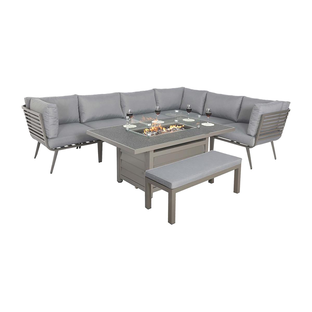 Mayfair 8 Seater 6 Piece Lounge Set with Rectangle Firepit Grey