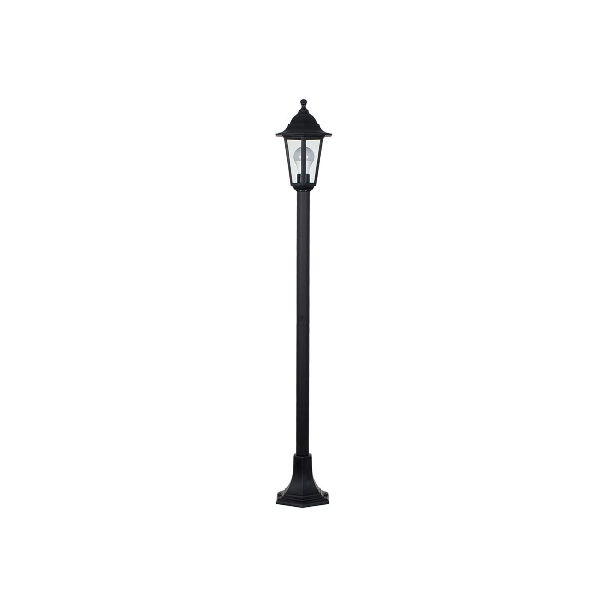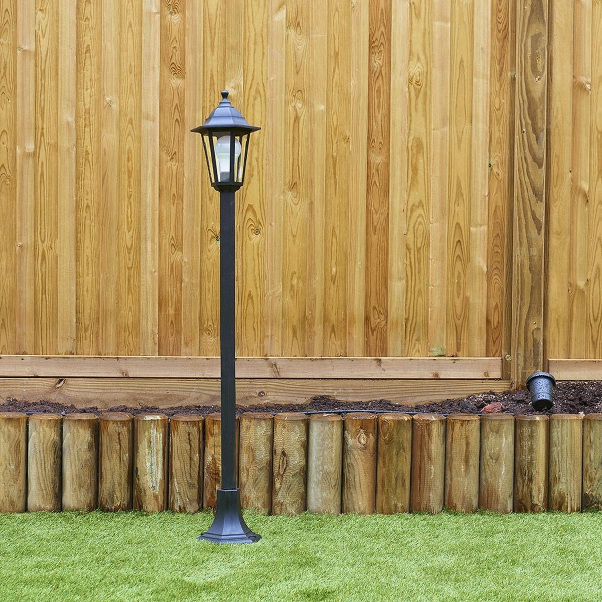 This vintage style, single head, outdoor lamp post would make a statement in any garden. Constructed from durable black resin, it stands at 1.2m tall and offers an IP44 rating, meaning it is fully certified for outdoor installation. The stylish, victorian-looking lamp will complement any garden or patio perfectly and will give any setting in which it's placed a much more traditional feel. Requires 1 x ES E27 (edison screw) bulbs - not supplied.
