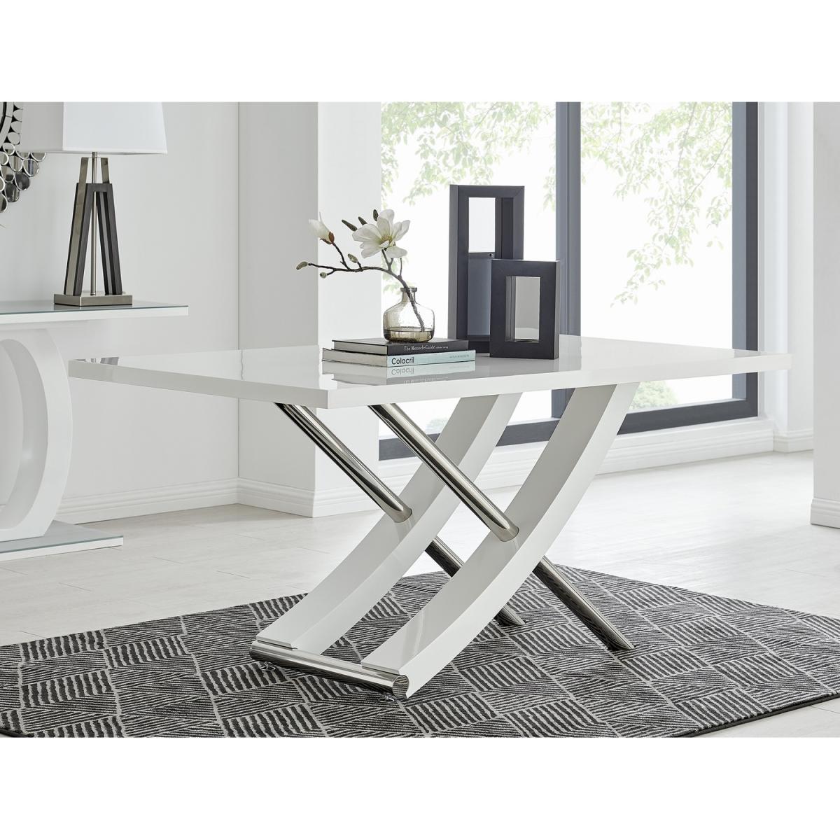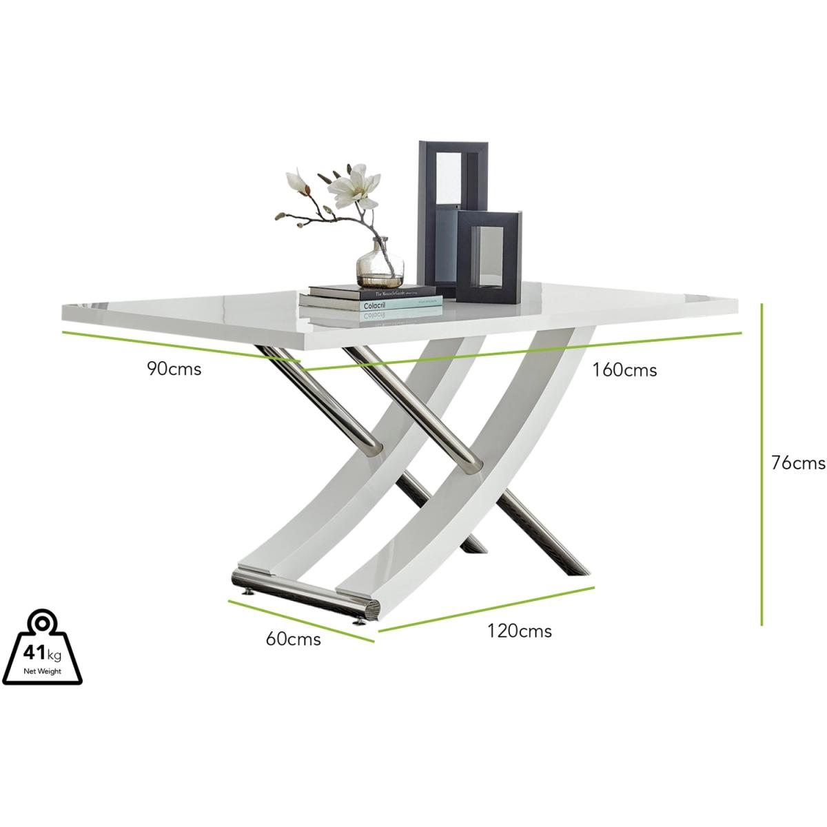 This Mayfair dining table really is a must-have. Its stunning combination of high gloss and stainless steel give your dining room the contemporary edge. Boasting a large 160x90cm high gloss surface made from manufactured wood, there is plenty of room for all your dining guests. And besides exuding style, the chrome metal legs act as strong and stable support, ergonomically designed for maximum comfort while dining. The high gloss table features easy wipe functionality, meaning it's simple to clean for extra convenience and practical everyday usage. Combining function with a unique modern style, this dining table is the perfect centrepiece to make any dining room stand out. The Mayfair gloss and chrome dining table certainly brings contemporary style to your home.