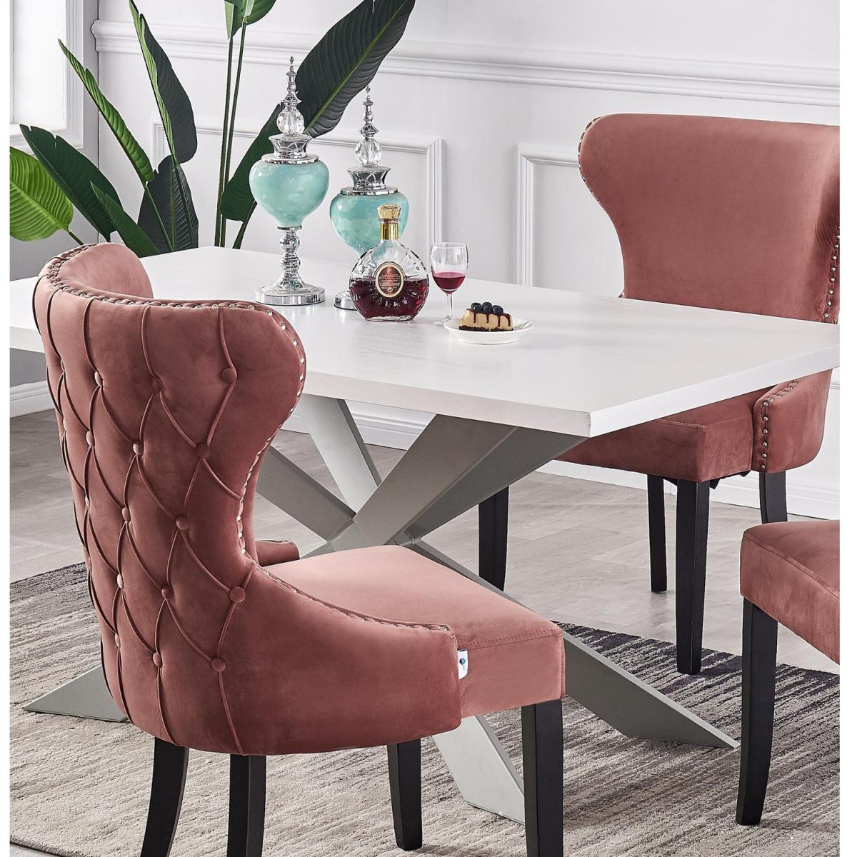 This very modern and full of the passion dining chair is something that You have to keep around You. It's not only strong and good-looking, but with its colors, it will make every space alive. The Lux Chair features a velvet finish, a quilted and piped backrest with button detailing, and wood legs. perfectly suitable for dining, living, meeting, restaurants, celebrations, dressing room, and office. You won't feel tired or stiff even though sitting for a long time. Dining chairs are designed in ergonomic shapes with roomy Velvet seat areas to relieve the pressure on your back and legs and enable you to relax your body. While the chairs Curved backrest offers you maximum softness, relaxation from work, and a pleasant meal.