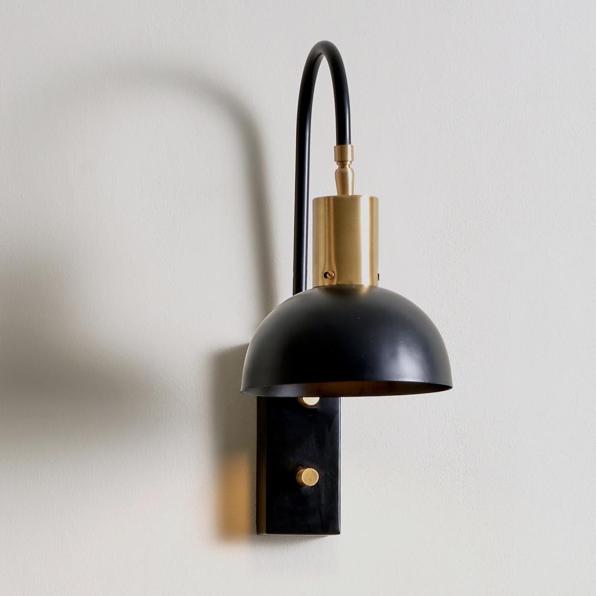 * Requires 1 x E27 Bulbs (Not included)* Super stylish wall light with matt black and brushed brass finish. * Moveable domed shade for pinpointing light source. * Perfect for adding sophistication to any room, matching table lamp available. The Mayfair Matt Black Domed Task Wall Light is a stylish addition to any space, with its matt black finish and brushed brass metal detailing. Featuring a moveable shade, this wall light allows you to pinpoint the light source wherever you need it most. Pair it with the matching table lamp for a coordinated look.