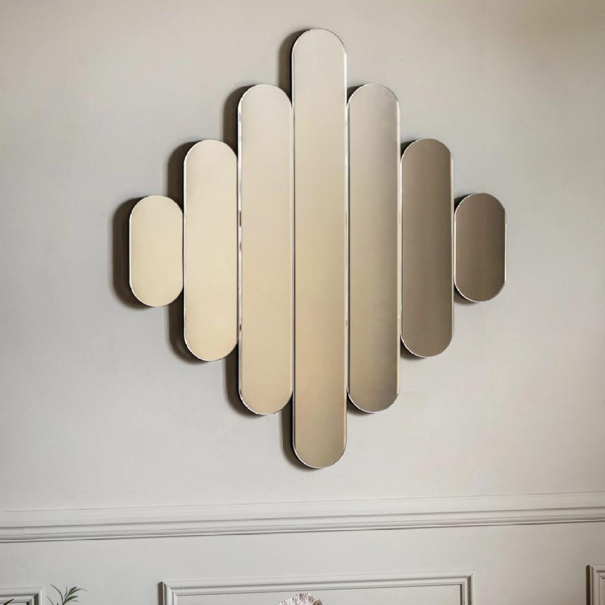 Enrich your decor with the modern elegance of our silver mirror, designed with distinctive rounded shape strips. The sleek silver finish adds a touch of contemporary sophistication, while the rounded strips create a dynamic, textured effect that captures and reflects light beautifully. This mirror’s unique design makes it a striking focal point for any room, effortlessly blending with both modern and classic interiors. Perfect for living rooms, hallways, or bedrooms, it combines functionality with a chic, artistic flair to elevate your space with a touch of refined style. Enrich your decor with the modern elegance of our silver mirror, designed with distinctive rounded shape strips. The sleek silver finish adds a touch of contemporary sophistication, while the rounded strips create a dynamic, textured effect that captures and reflects light beautifully. This mirror’s unique design makes it a striking focal point for any room, effortlessly blending with both modern and classic interiors. Perfect for living rooms, hallways, or bedrooms, it combines functionality with a chic, artistic flair to elevate your space with a touch of refined style.