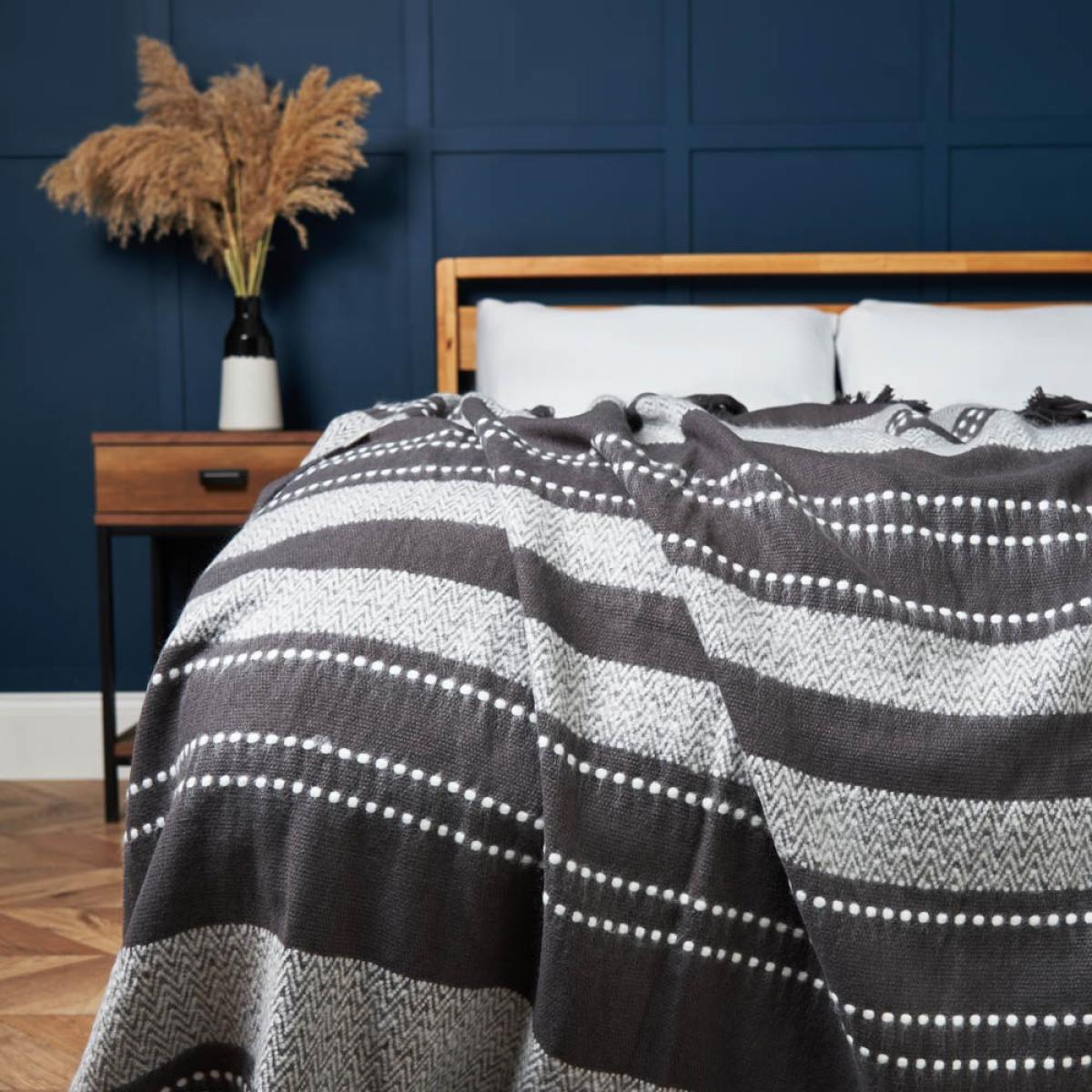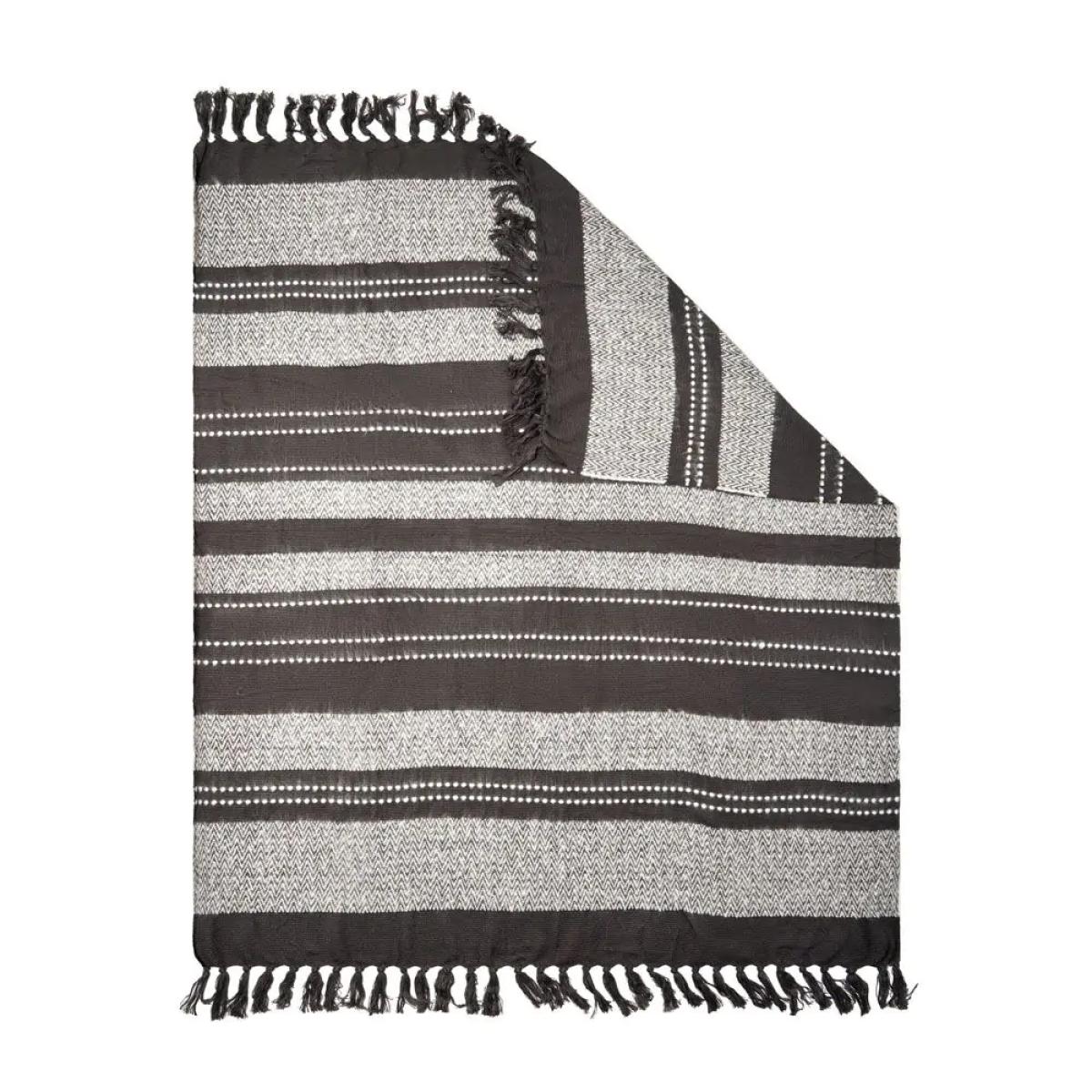 Stylish soft furnishings to upgrade your home décor with the Mayfair Throw in a chic black and grey combination. Its sophisticated geometric design and tassel detailing at the edge make it a statement piece for your living space. While the 127 x 152cm size offers both style and warmth, looking perfect when draped at the end of your bed or over a sofa.