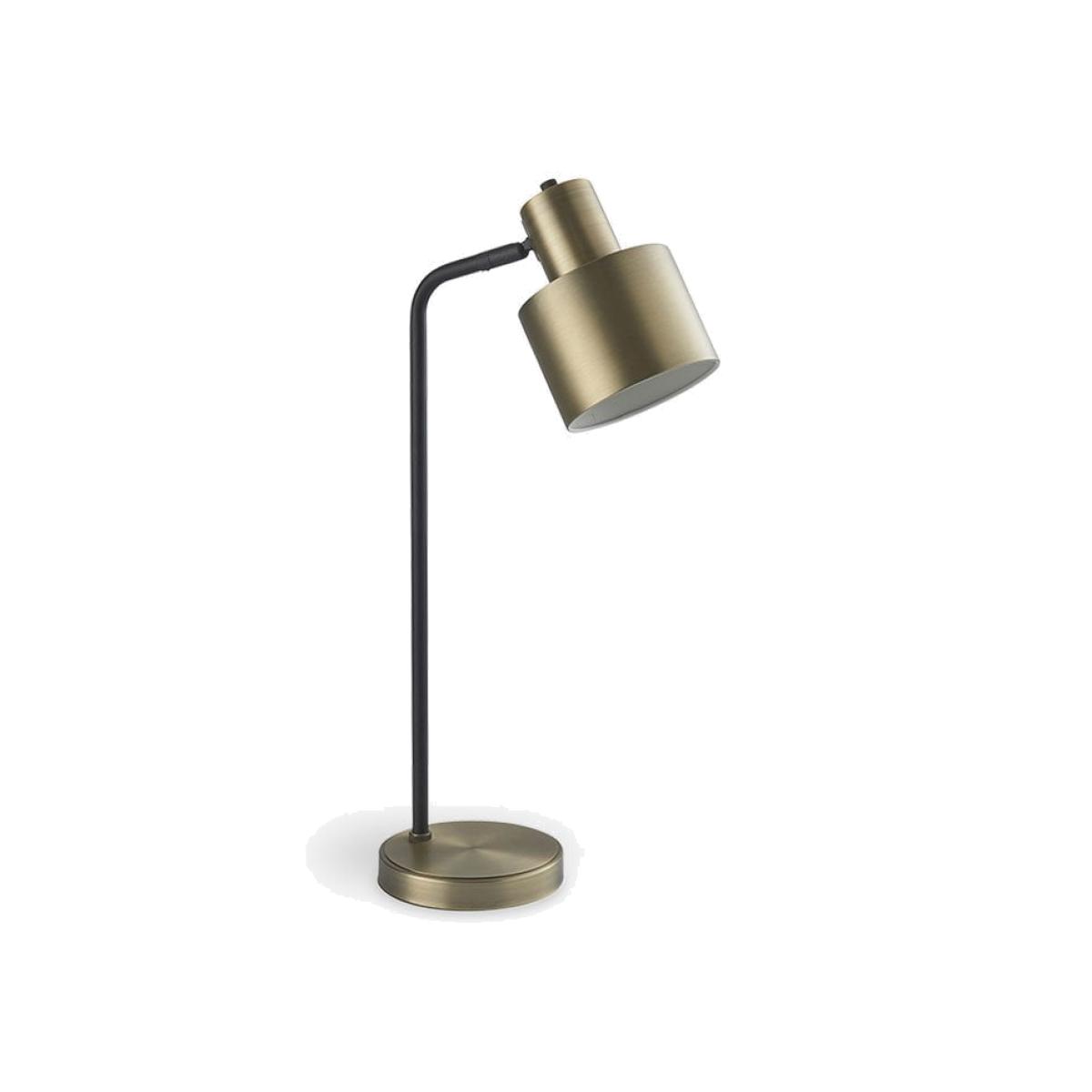 It's time for an industrial touch with the Mayfield Table Lamp. The ideal task lamp for workspaces and quiet nooks in the home, the antique brass finish combined with matte black stem gives that industrial modern vibe. There is an easy on/off switch with knurled detailing and soft downwards directional lighting, perfect for studies and reading spaces.