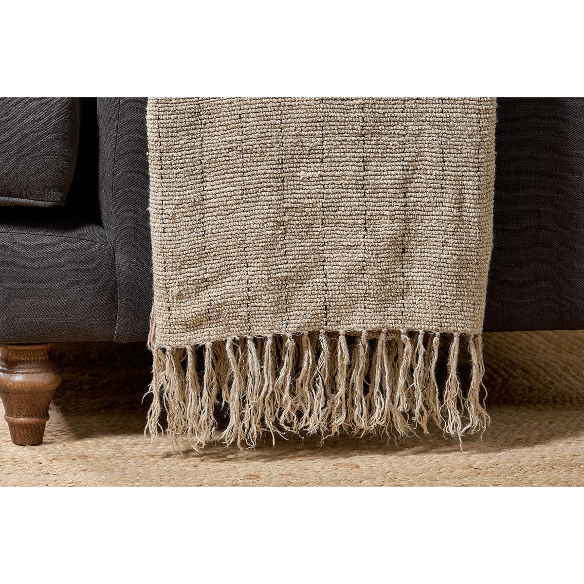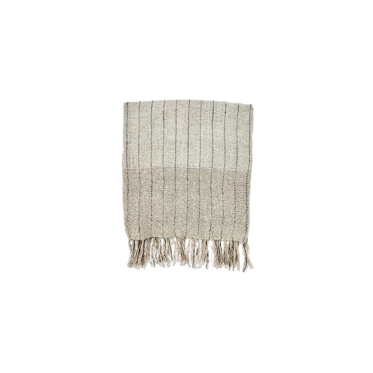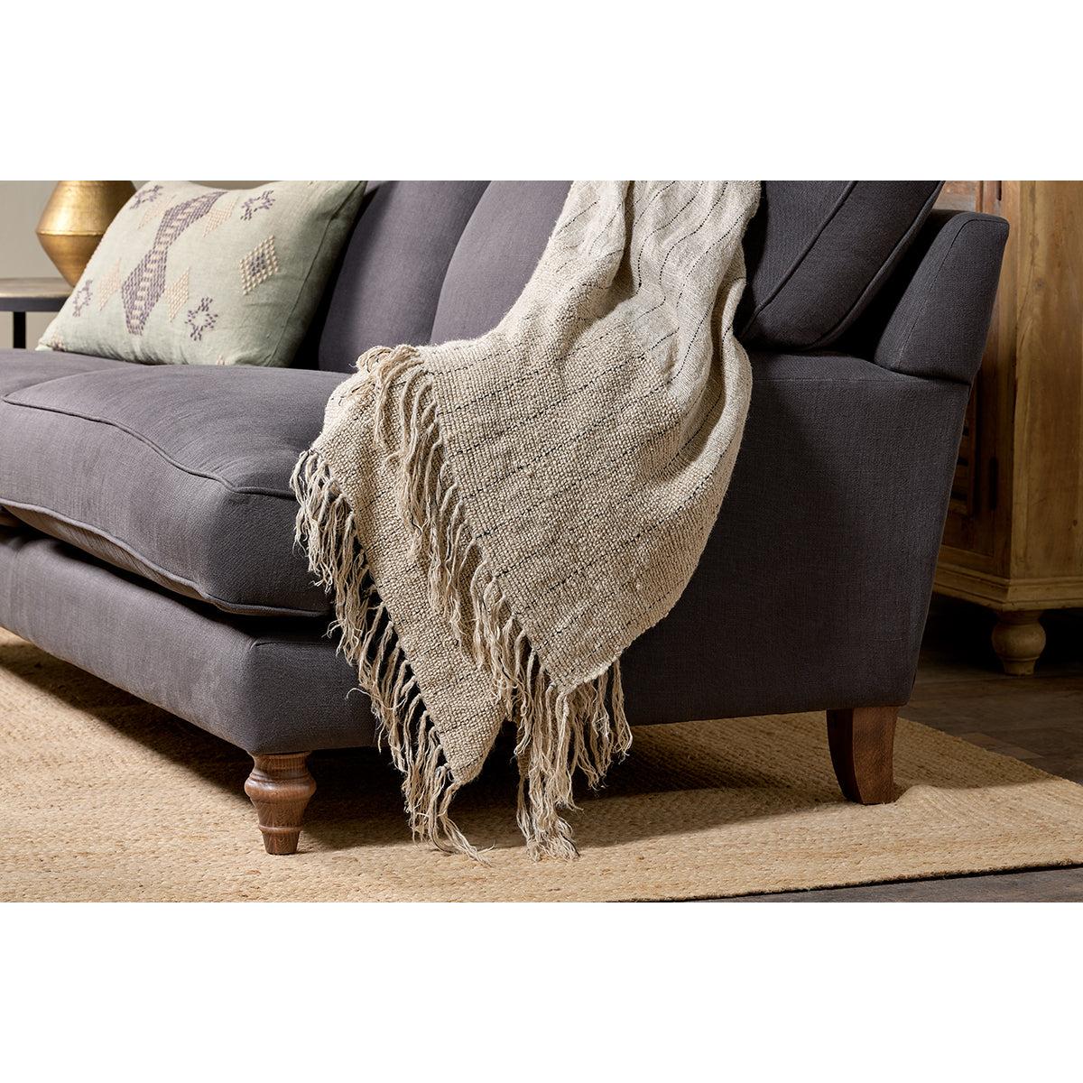 The subtle texture of this tactile cotton and linen Mayla throw is enhanced by the neutral tones and faint charcoal stitching work. Layer across the back of a sofa or armchair. Style with our Mayla cushions.