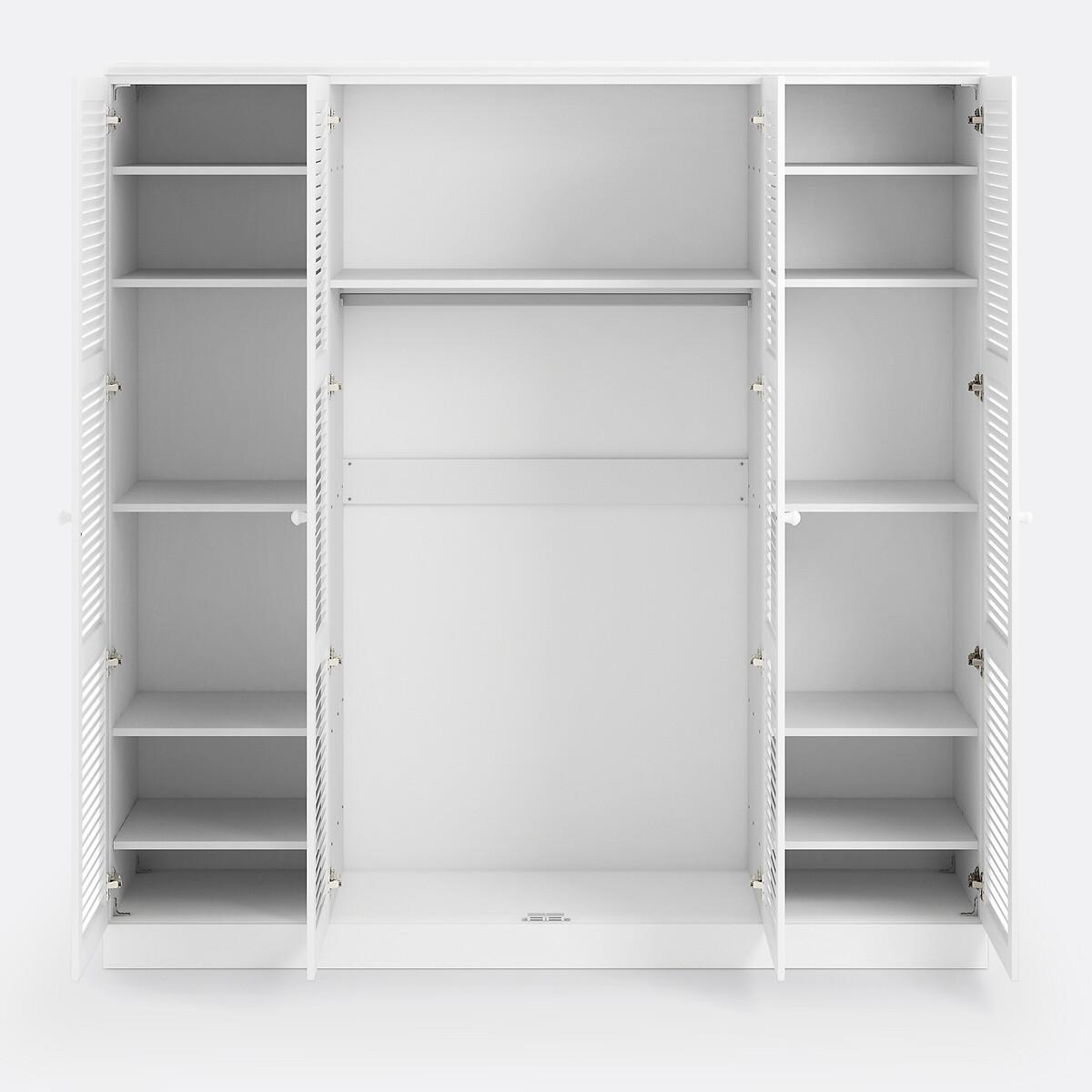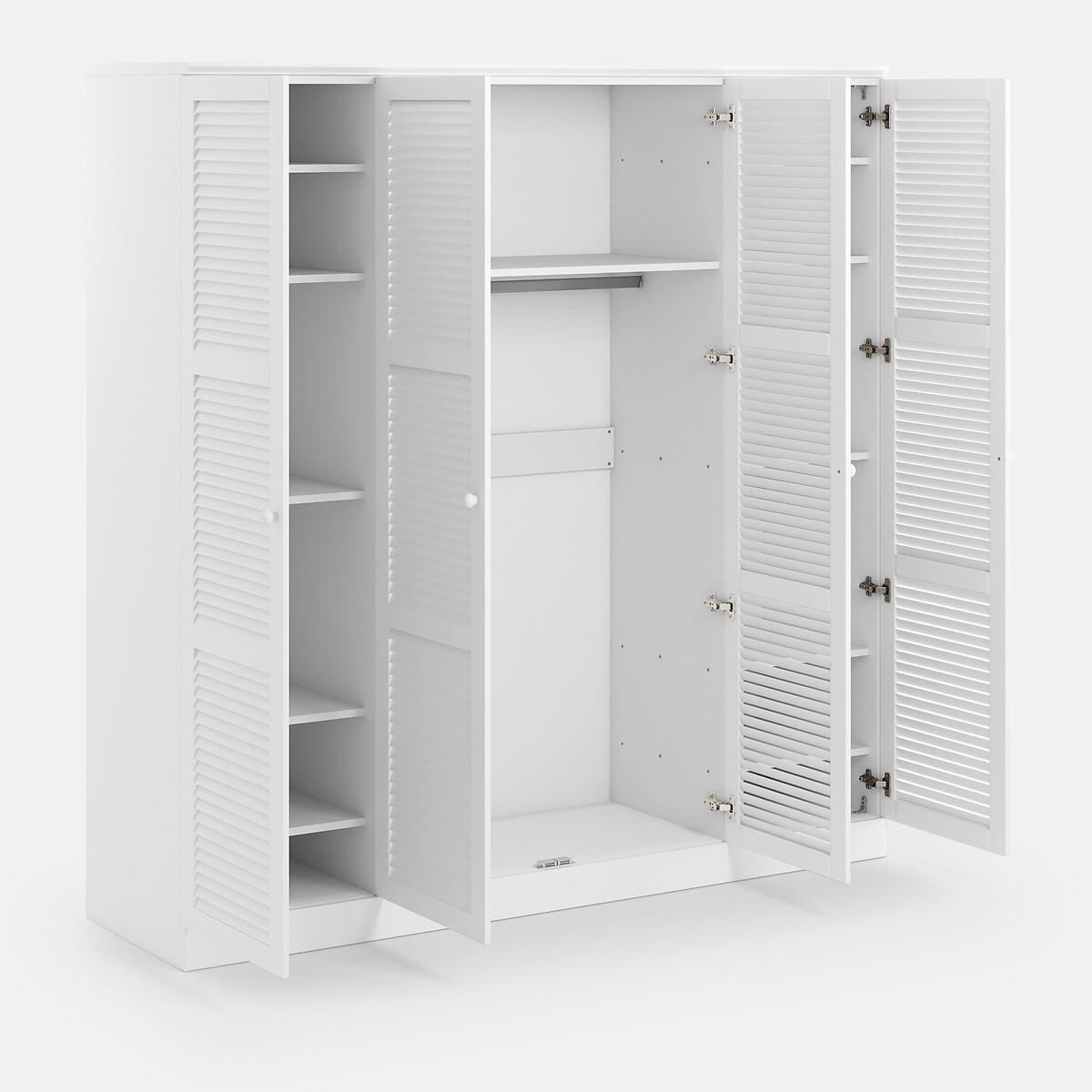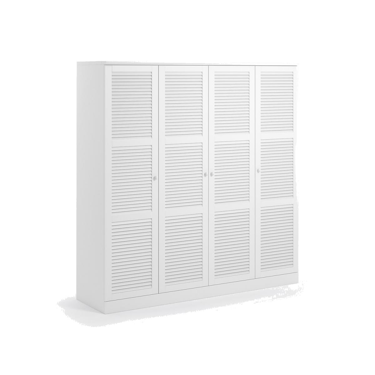 The 4-door Mayor wardrobe. Classic and timeless, this wardrobe has 4 doors, 9 shelves and a hanger, which offers a large storage space!