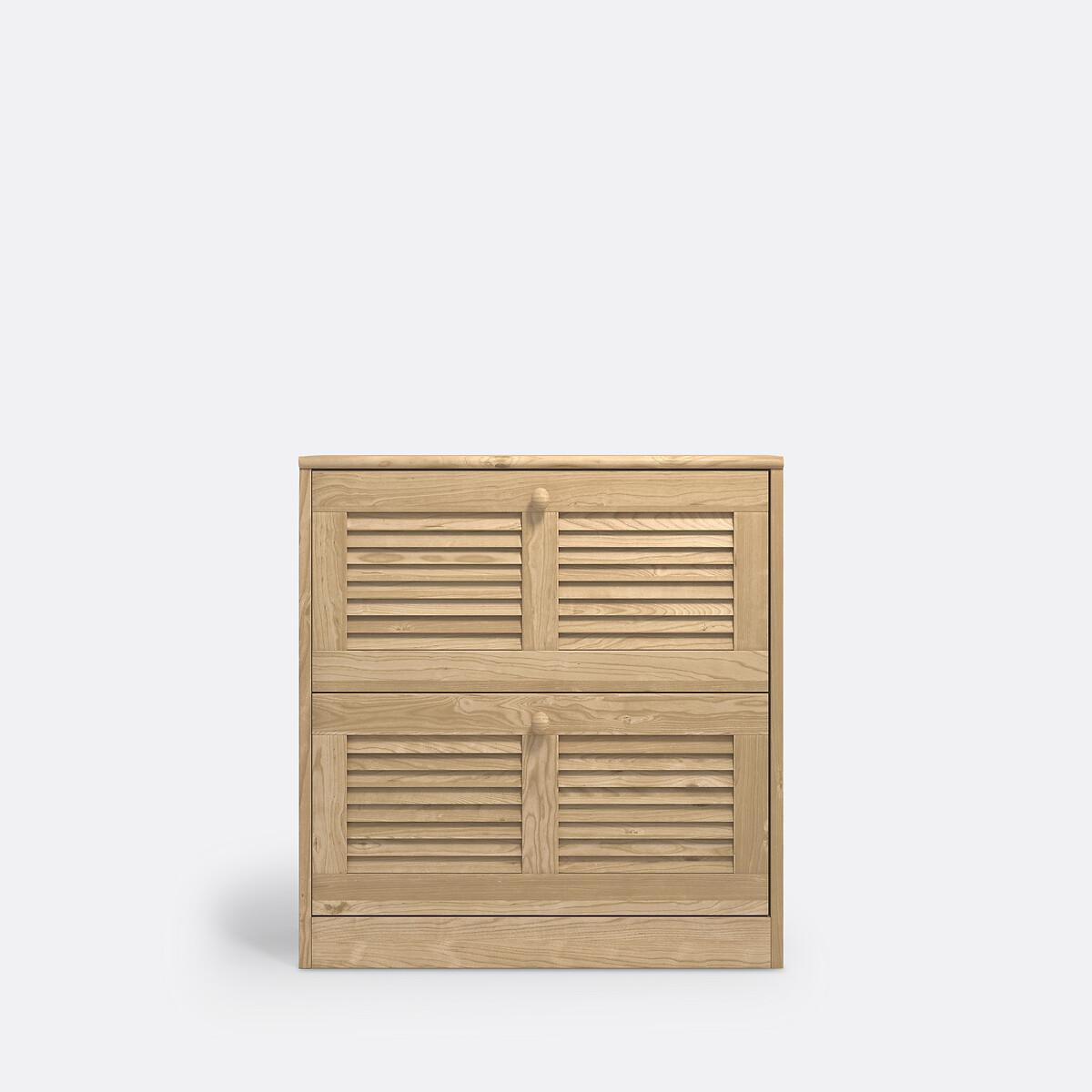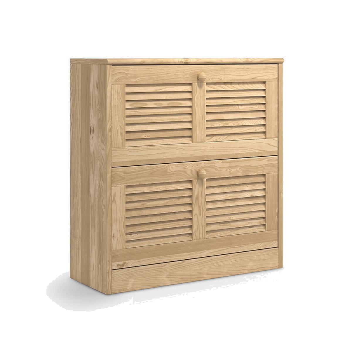 Mayor solid pine shoe tidy (up to 16 pairs). This shoe tidy spells the end of shoes left strewn around the house! Stores up to 16 pairs of shoes. Product Details • 2 pull-down doors. • Louvre-style doors. • Holds up to 16 pairs of shoes. • Solid pine • Nitrocellulose varnish finish (except the untreated ready to paint version).Dimensions • Width: 70cm • Height: 74cm • Depth: 26cm. Dimensions and weight of parcel1 parcel • W80 x H22 x D38cm, 14kg