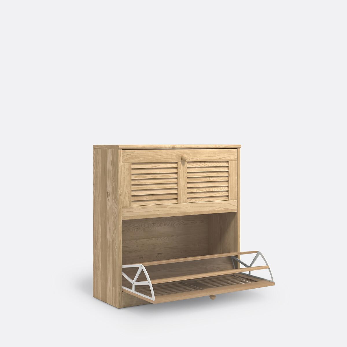 I love this shoe cabinet for its practical design and versatile appeal. The natural wood finish gives it a warm, timeless look that works well in both modern and traditional interiors. The pull-down doors are excellent for quick access, making it ideal for busy hallways or entryways where space is limited. It's also a great piece to style with minimal accessories on top, like a sleek tray or a potted plant, to keep the look clean and functional. In terms of interior placement, it suits a neutral colour palette, but can also add contrast in darker or more colourful settings. Overall, it's a smart, understated addition that keeps shoes organised without sacrificing style.