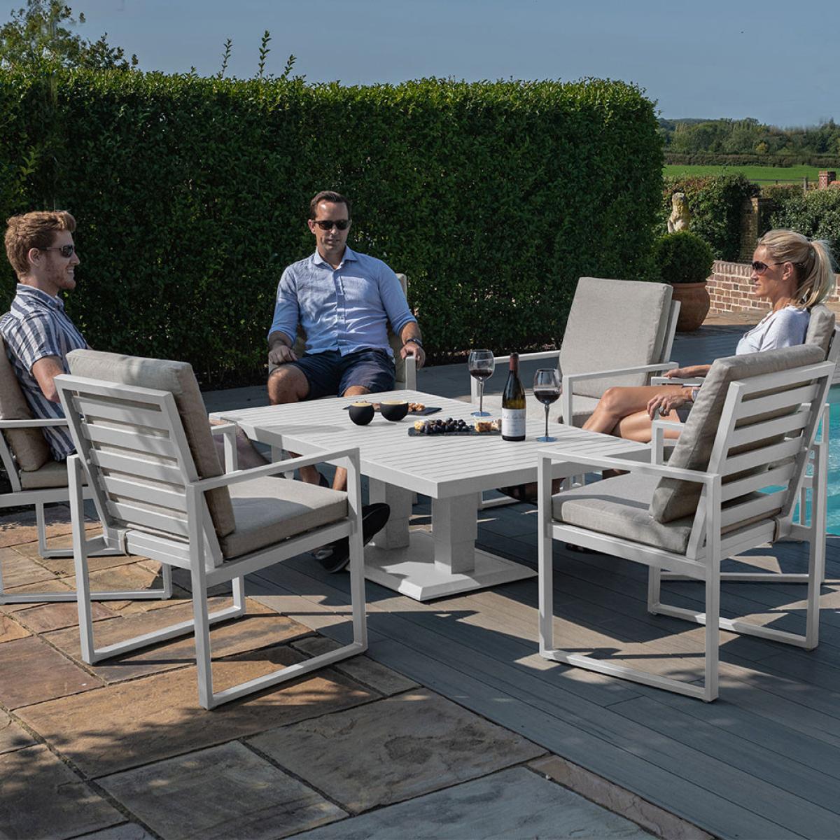 The Amalfi 6 Seat Rectangular Dining Set is now available with the gas lift rising table - allowing to you easily adjust the height of your table within seconds. The hydraulic system has been uniquely designed with entertaining in mind, with a simple press button which allows you to effortlessly move between dining table height to coffee table height in moments.