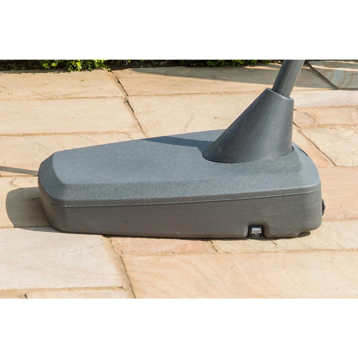 The Banana Parasol pairs perfectly with any of our existing sets, and provides shelter from the summer sun. When the canopy is fully opened, there is plenty of protection from the elements. In addition the Banana Parasol is supported by a sand & water filled base. The entire parasol can be manoeuvred across your patio area due to the wheels which are located underneath the base. Please note the base should comprise of 80% sand and 20% water. The parasol canopy is manufactured from a 230gsm polyester, which is also UV rated.