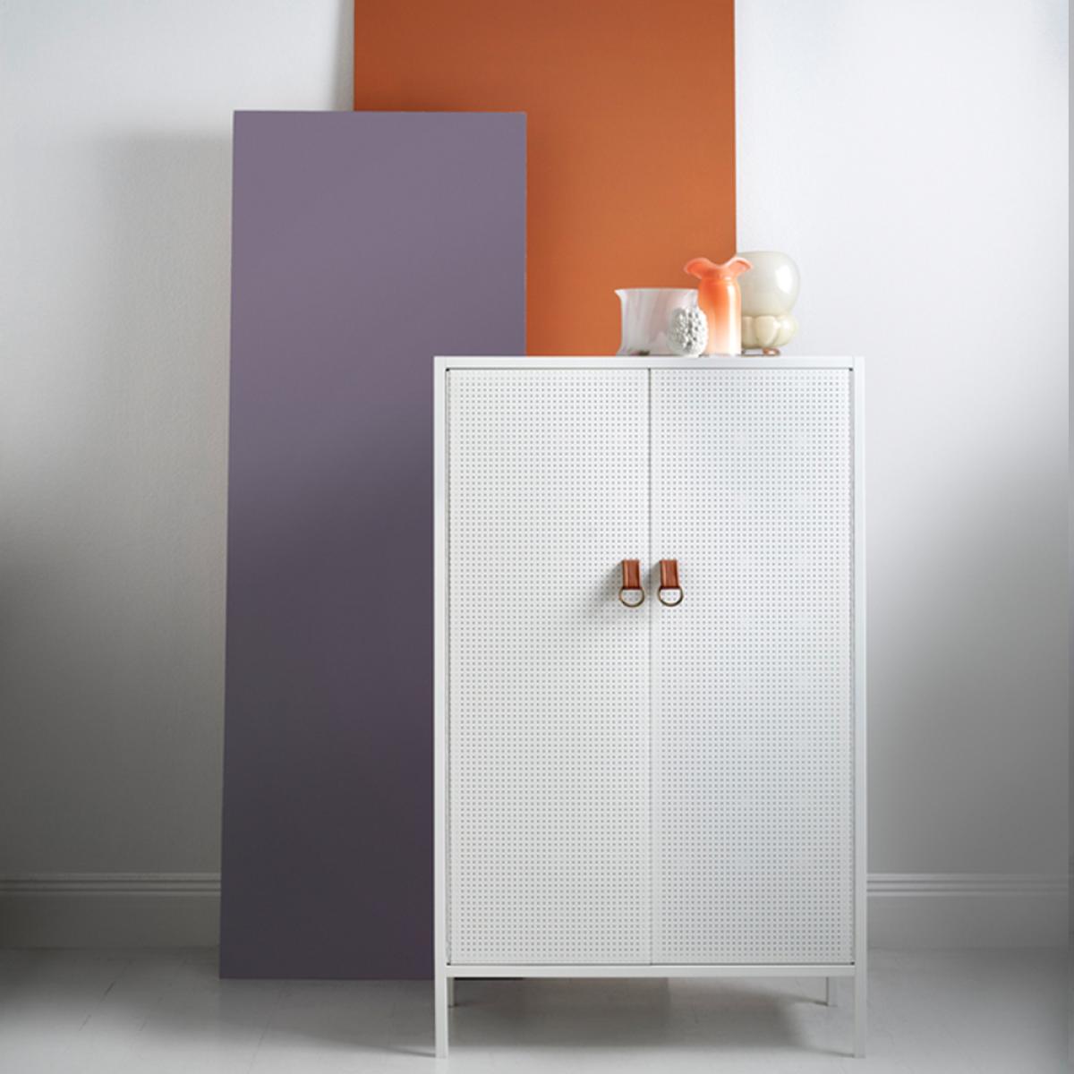 I love this cabinet for its sleek, contemporary look combined with the understated elegance of the leather handles. It works particularly well in modern or minimalist interiors, adding a subtle texture contrast without overpowering the space. Its clean white finish makes it versatile, pairing effortlessly with both colour-rich and neutral palettes. Practically, it’s a great storage piece for living rooms or bedrooms where you want to keep things tidy but still retain a stylish aesthetic. For styling tips, consider showcasing some decorative books or ceramics on top, while using the interior for organisation of smaller items - the leather handles bring a touch of warmth and sophistication.