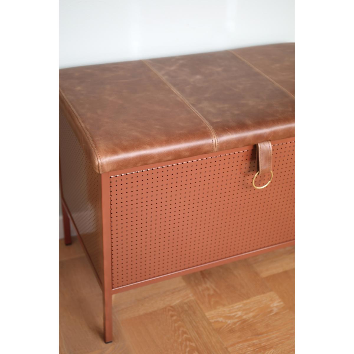 The Frank storage bench from Swedish brand Maze is a spacious storage furniture with a sleek exterior that makes it suitable for both the hallway and the bedroom. The perforated steel in combination with the leather seat creates a stylish and classic expression that allows it to blend seamlessly into the interior in an elegant way.