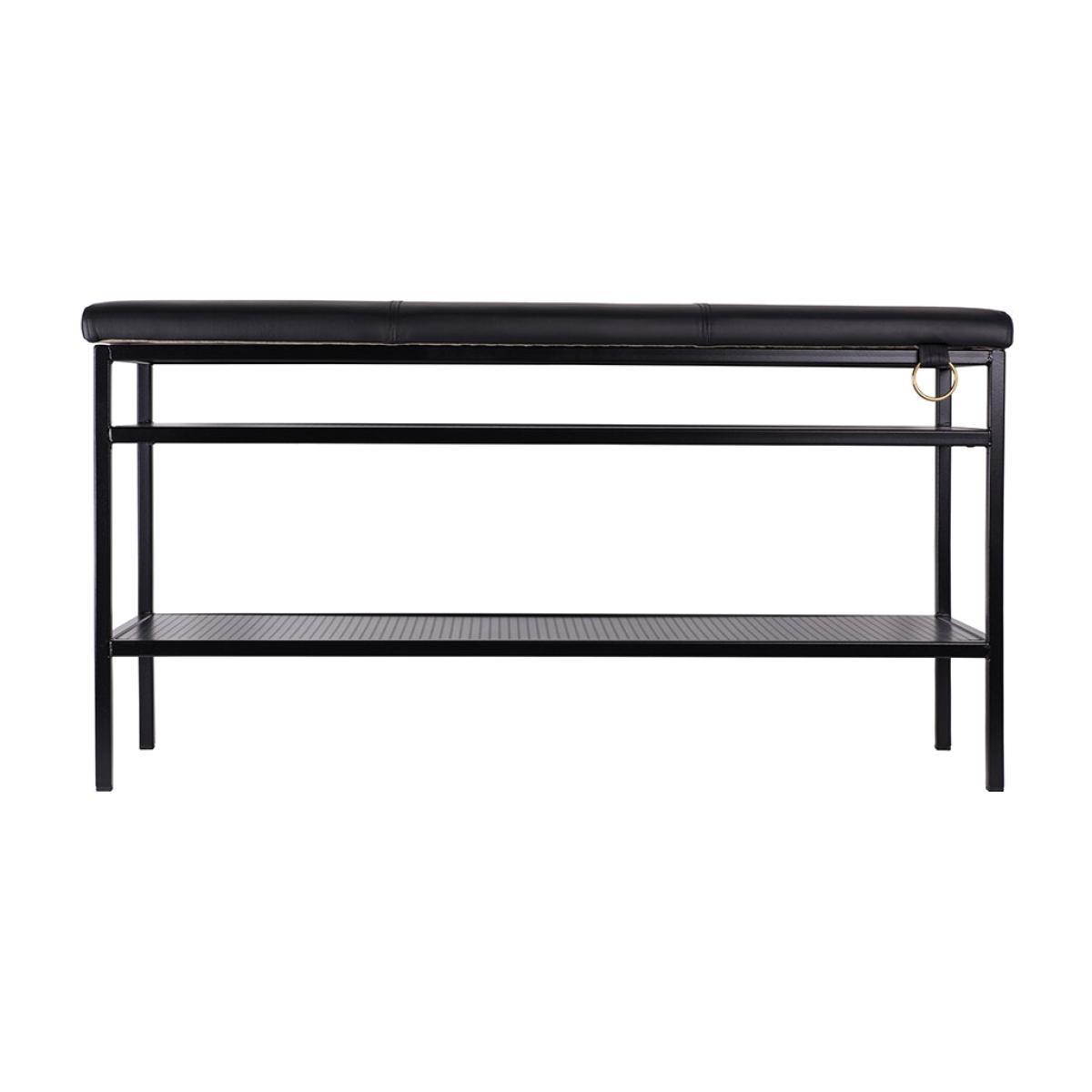 I love this black bench for its sleek, minimalist design that can seamlessly slot into various interior styles. It works particularly well in modern or industrial spaces, offering both function and style without overwhelming the room. Practical styling tips include using it as a foyer or hallway piece paired with a mirror or artwork above, or as extra seating in living areas. The lower rack provides handy storage for shoes, baskets, or decorative accents, making it a versatile addition to rooms where practicality is key. Its clean lines and neutral colour mean it can be easily dressed up with cushions or throws to add texture or colour if desired.